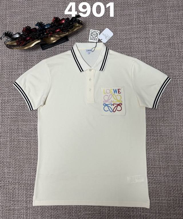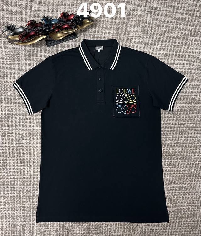Loewe men's open-chest lapel style, 4901, pure cotton fabric, embroidery, black, apricot, sizes M, L, XL, XL, XLXL