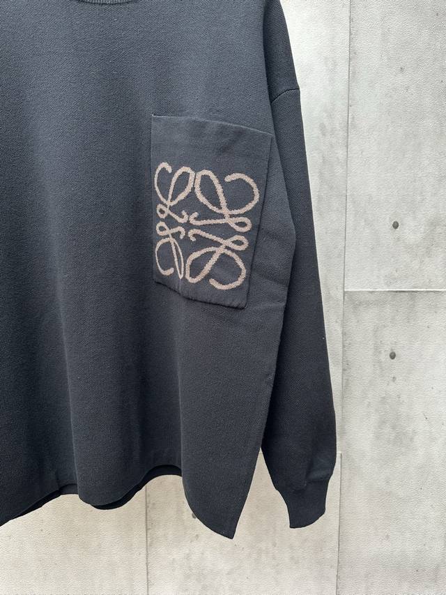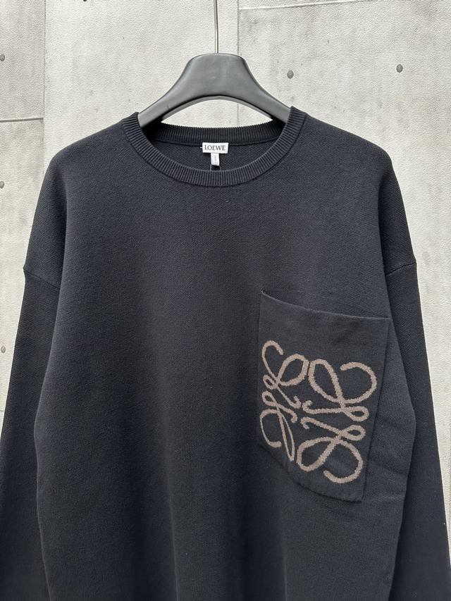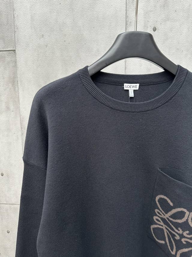 Loewe Pocket Jacquard Sweater Fabric Selection: Made with 49% viscose, 43% cotton, and small amounts of nylon and spandex. Viscose and cotton provide a skin-friendly, smooth, and draping feel, making it feel like a gentle breeze against the skin. The small amount of nylon greatly improves its abrasion resistance, while the spandex provides just the right amount of elasticity, allowing for free and unrestricted movement. Craftsmanship: Utilizing a high-needle-count, fine-gauge knitting machine, every turn of the pattern is meticulously crafted, avoiding jagged edges, resulting in a clear and crisp pattern boundary on the front and a smooth, non-friction-resistant high-quality logo jacquard on the back. Fit: Breaking gender boundaries with an oversized cut and blurred shoulder lines, this sweater is slimming and flattering. Both men and women can find their own relaxed and casual style within its design. Accessories: 1:1 custom-made three-label. Sizes: S, M, L, XL