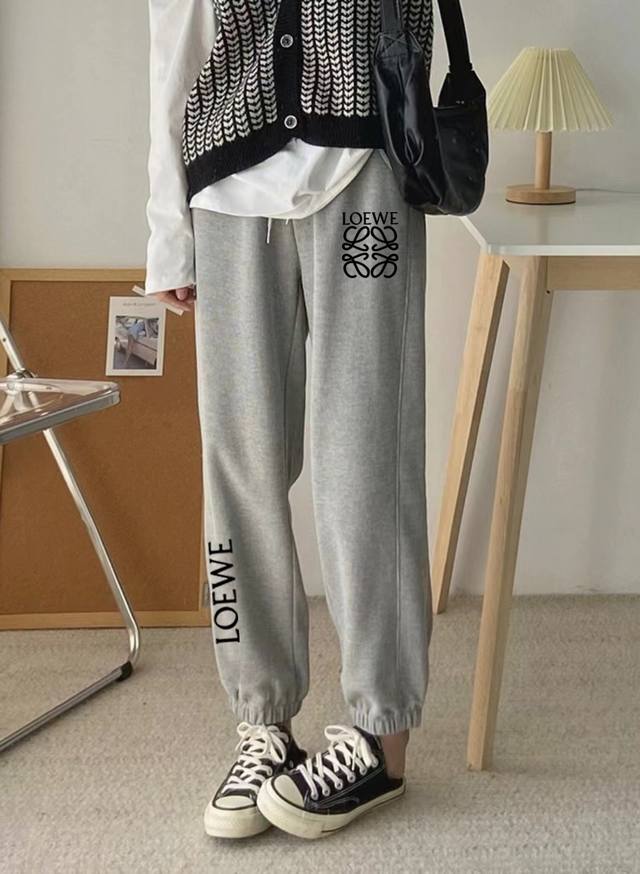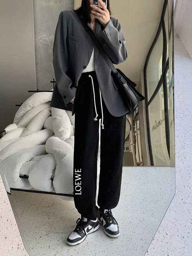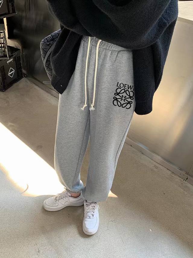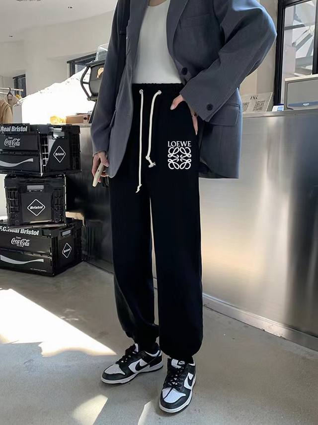 Loewe side patchwork spring and autumn versatile loose sports sweatpants, cropped pants, casual pants