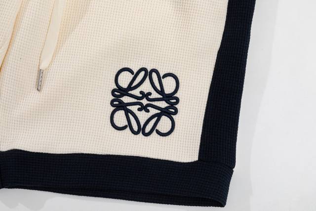 Loewe Summer new product, logo embroidered color matching waffle shorts, high-qu