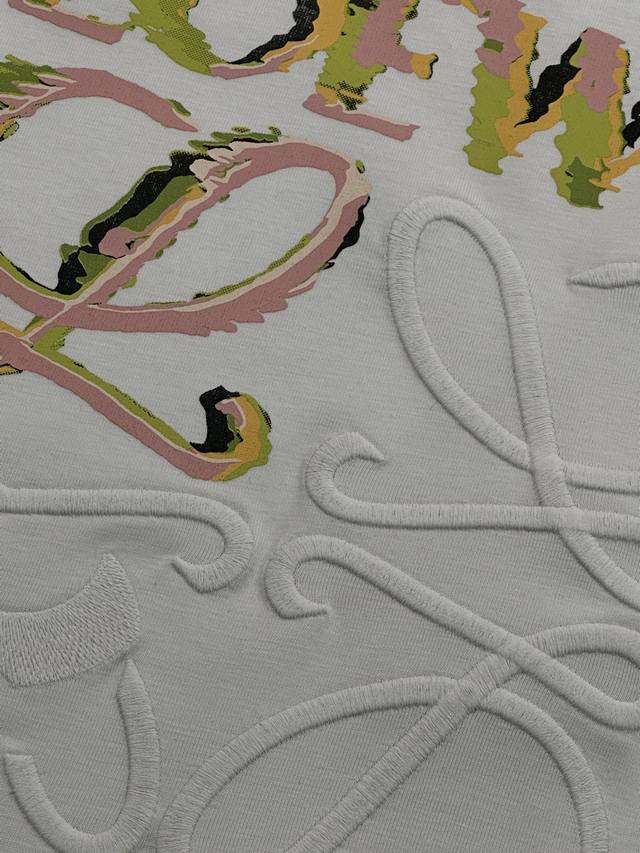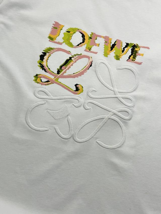 Loewe trendy brand embroidered print splicing craft couple short-sleeved T-shirt