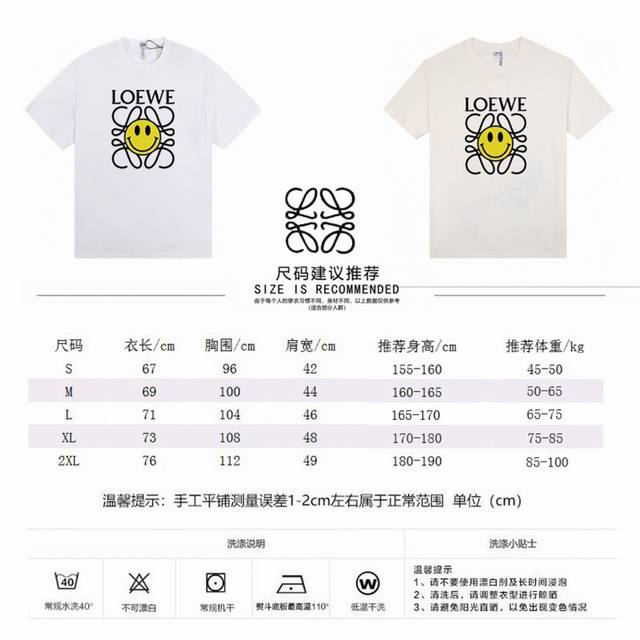 Loewe's new smiley face short-sleeve top, with cartoon prints that easily catch the eye! It's very textured and suitable for everyone! Heavy cotton, soft, elastic, breathable custom-made fabric, feels delicate, soft and thick, washable and not deformed, wear-resistant and not pilling, and does not irritate the skin. Everything starts from comfort, no restraint on the upper body! The same style for men and women!
