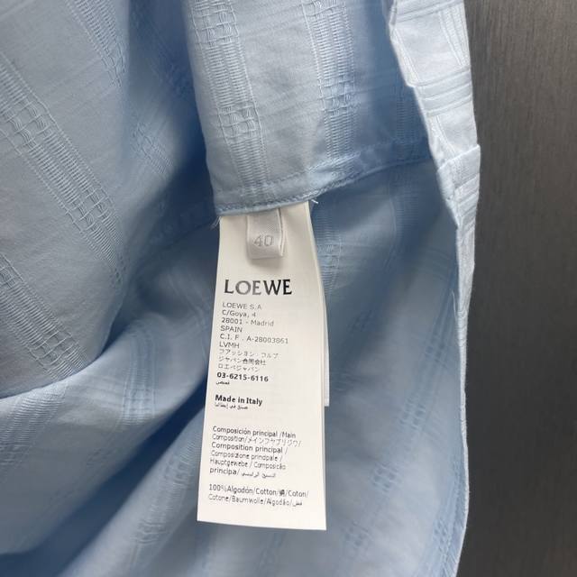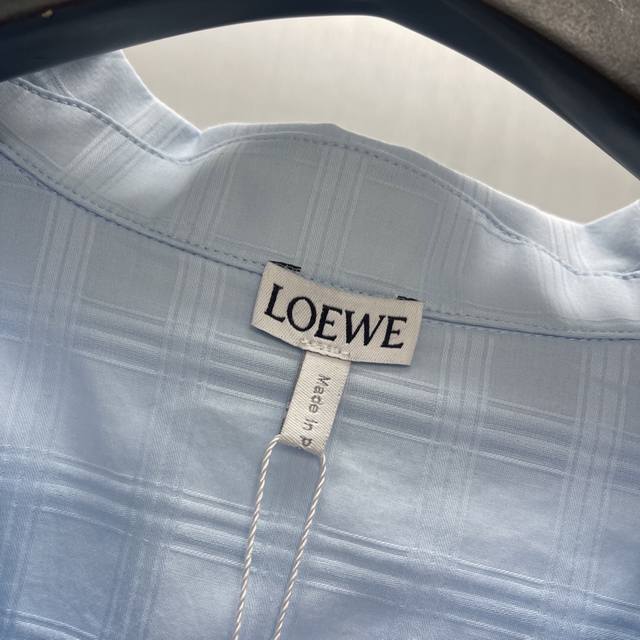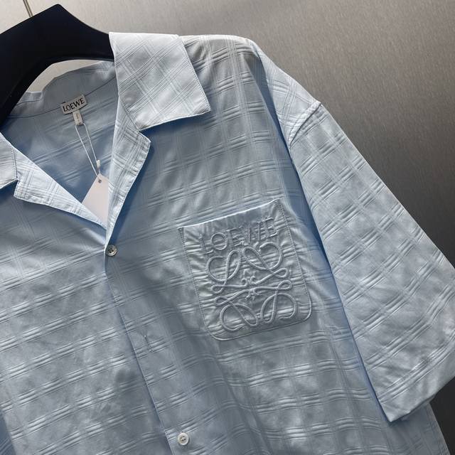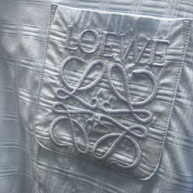 Lw Checkered Pocket Embroidered Blue Short-Sleeve Shirt (Ddd) Size: S-XL (Ddd) A light blue canvas of interwoven checks, embossed pockets adorned with a three-dimensional signature. Loewe uses simple lines to outline a textured everyday look, making every detail a self-evident statement. (DDD)