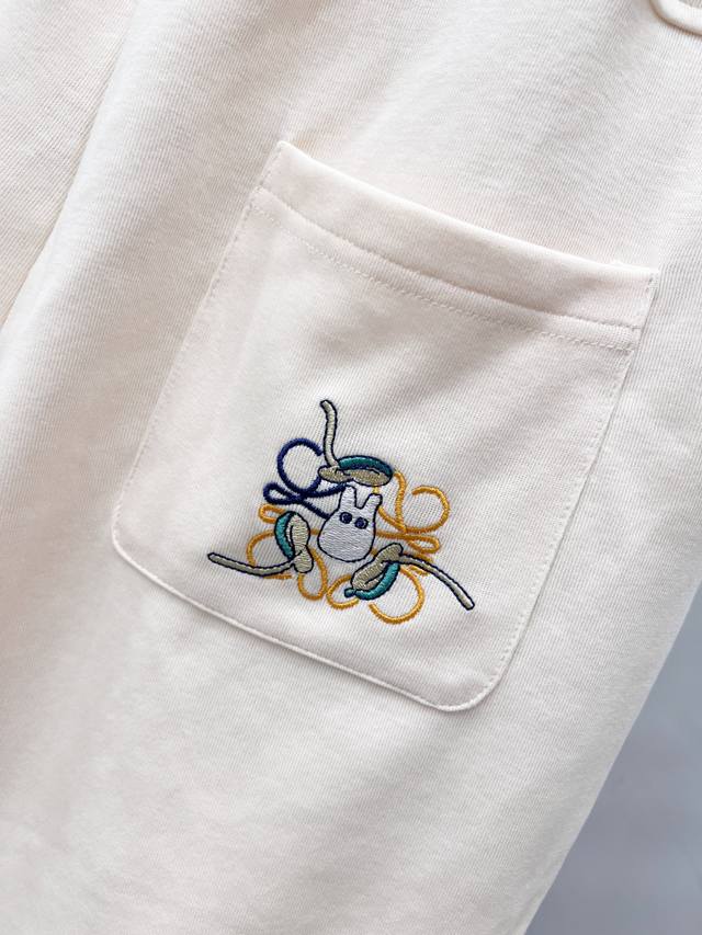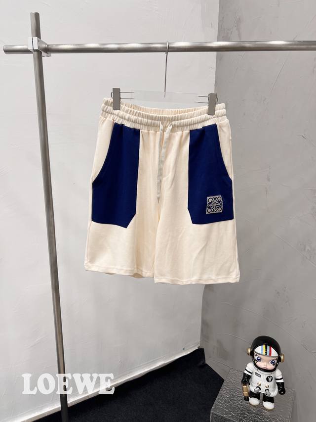 - The lining is fully hemmed and embroidered with 100,000 needles. The embroidery is exquisite and full without any extra threads and connecting lines. Loewe shorts Loewe patchwork pocket chinchilla colorblocking embroidered shorts. In the hot summer, buy early and enjoy the shorts early. This kind of item is favored by many girls. Elastic waist with drawstring to easily adjust the waistline. Large pockets with colorblocking are very unique and eye-catching. The classic Logo embroidery on the pocket is simple and elegant. The chinchilla colorblocking embroidery on the back pocket is very cool and dazzling