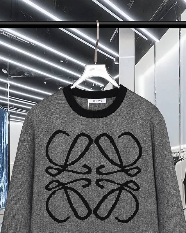 Offers: Loewe 25Fw Autumn/Winter pullover sweater with large front logo embroidered jacquard. Made from imported wool blend fabric.