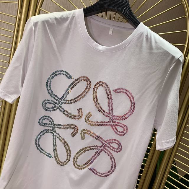 p Loewe. Newest hot-selling short-sleeved T-shirt of the year. Same style as department stores, Australian rhinestone hot-fix design. The overall design is simple and elegant yet stylish, featuring imported Australian rhinestones. Classic luxury brand logo. Made of imported mercerized cotton. Comfortable and smooth to the touch, breathable and cool to wear, definitely at the forefront of fashion! Sizes: M-XXL. M fits 1115/135 DDD