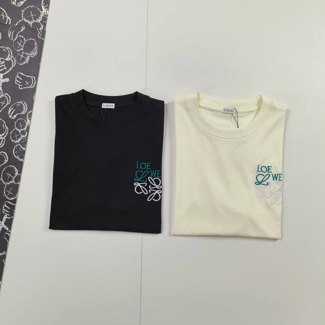 Loewe short-sleeved T-shirt with contrasting colors and misplaced embroidery on couple short-sleeved