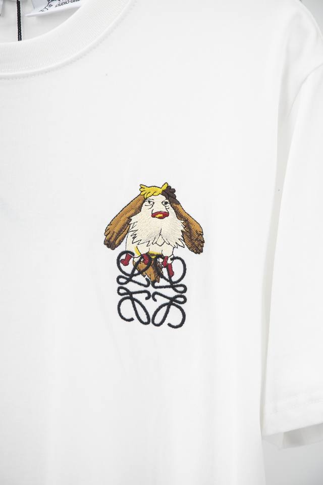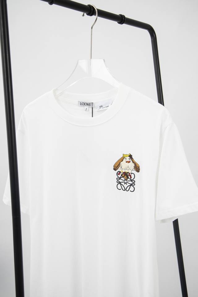 Style: G40 - Premium Edition! Loewe Moving Castle Short Sleeve Loewe x Hayao Miyazaki's final Howl's Moving Castle collaboration! Cotton Heen Anagram T-shirt featuring Howl's Moving Castle embroidery and Heen pattern thread embroidery on the front. This T-shirt is part of the Loewe x Howl's Moving Castle capsule collection. #Heavy-duty color-matched, custom-dyed special-spun antibacterial cotton is made from 240g 32s fabric with double-yarn spandex thread. Two official colorways, gray and white, are available. Huafu gray is custom-dyed with a specific imported dye and was ultimately recreated after multiple light-testing comparison tests. Gray is more challenging to achieve. #The front features the Yinyin dog embroidery pattern, using a pin-stitching technique. The embroidery pattern is custom-made with six different thread colors. Pin-stitching is similar to sew stitching, with the uneven effect achieved by interweaving needles of varying lengths. The embroidery surface is specially treated to make the silk thread flat and smooth, and then the overall embroidery pattern is finished using the flat embroidery needlework. #Simple vertical round neck short sleeve version is developed according to the pattern paper, and the cut is extremely simple. The knitted material has a certain degree of stretchability, and the upper body will not be tight. The round neck is spliced with ribbed neckline in the same color, and the back neckline is taped to effectively prevent the neckline from deforming after multiple wears and washes. The shoulder line is fitted, and the bottom hem and cuffs are trimmed with visible seams.