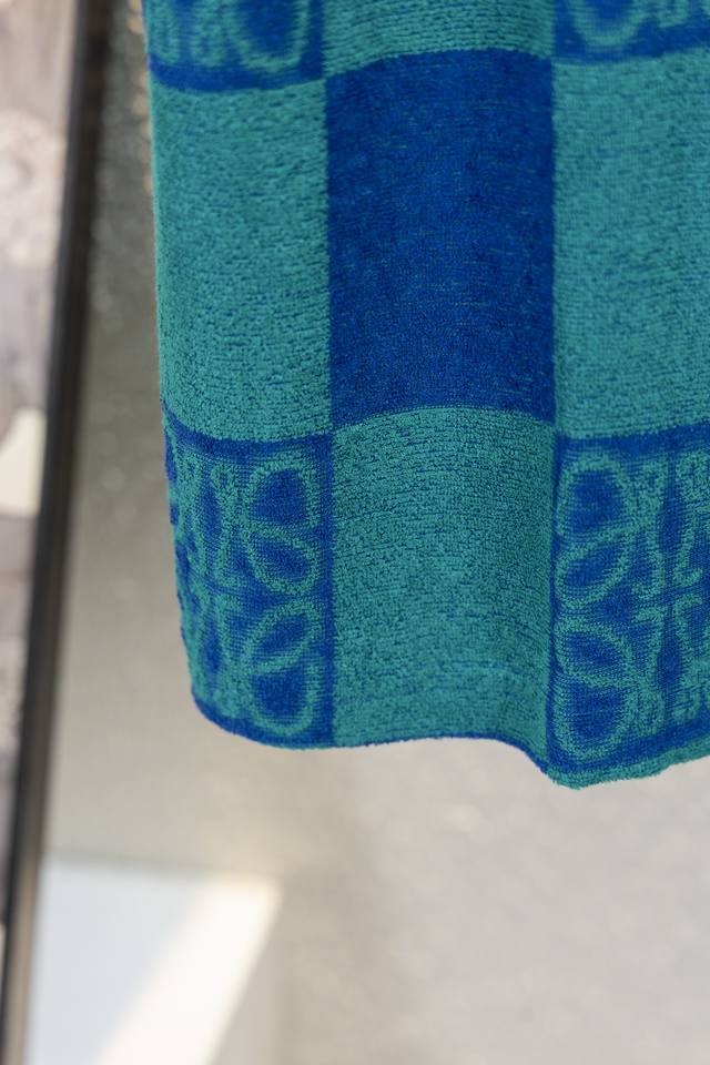 Style No. K8012 Loewe 25Ss Jacquard Terry Cloth Towel (Same Style as in Boutique) - Couple Style. Made with meticulously crafted terry cloth fabric, adorned with a matching jacquard pattern, highlighting the classic Loewe logo jacquard design! The slightly thicker fabric enhances its breathability and softness, while the rich cotton texture provides exceptional comfort. A must-have for discerning individuals, complete with original factory accessories and labels! Unisex! Color: Green/Grey Sizes: Xs, S, M, L