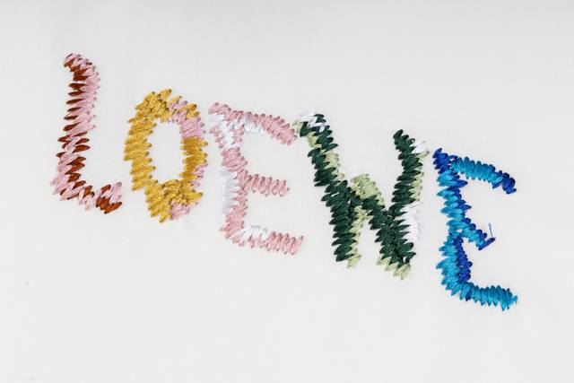 Style No. Sl167 Loewe round neck short sleeves with colorful letters embroidered