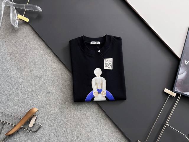 Top-tier version, different from standard Ddd 25Ss Loewe's new summer collection, featuring a double-yarn pure cotton short-sleeved top. This unique, unisex style is a runway piece made with imported custom-dyed fabric. The back collar has a chain-lock hem, and the shoulders are fully covered. It won't deform or shrink after washing. This is the latest summer collection, fashionable and unique, super versatile and stylish. Suitable for both men and women, a must-have! Complete with hangtag, neck label, and wash label. Colors: White, Black. Sizes: M, L, XL, XL, XL. Please provide your height and weight when ordering .