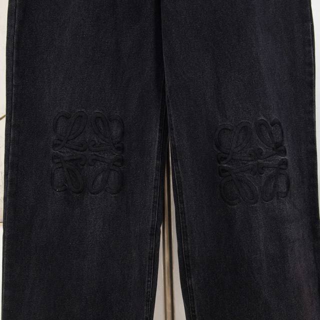 Zp Version [Exclusive Supply] Loewe Embroidered Washed Distressed Denim Jeans. Fabric: 12 oz 7*7 twill denim fabric, finished garment weight approximately 420g after washing. Craftsmanship: 3D embroidery, approximately 12,000 stitches on each side. Finished garments are washed in batches of 20, undergoing sand washing, distressing, and other processes. Accessories: Antique-plated antique yellow buttons on the waistband. Accessories: Antique-plated brass rivets on the five pockets. Accessories: Embossed leather label on the back panel. Accessories: Antique-plated brass zipper on the door. Medium-weight washed cotton denim jeans with Anagram embroidery at the knees. * Relaxed fit, standard length * Pants length: 105cm, size 36 * Mid-rise, loose leg opening * Concealed zip closure * Slanted side pockets, low back patch pocket * Back adorned with Loewe embossed leather patch Accessories: Custom 1:1 washed label Accessories: Custom 1:1 embossed leather label Accessories: Custom 1:1 distressed buttons Accessories: Custom 1:1 electroplated zipper Accessories: Custom 1:1 distressed rivets Color: Blue-black Sizes: S, M, L, XL Item Number: Xs10481