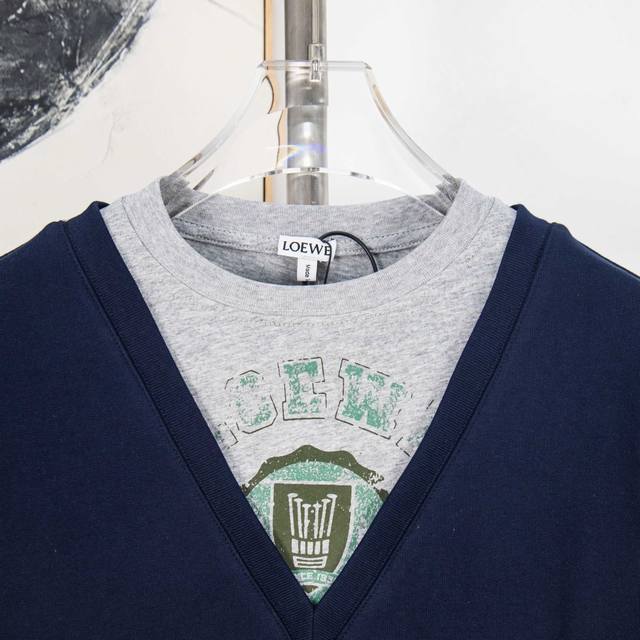 Zp Version [Exclusive Supply] Loewe Faux Two-Piece Printed Embroidered V-Neck Sweatshirt Fabric: 380g terry cloth, ribbed with 1*1 double yarn. V-neck: 50-count double-ply ribbed with 1*1 Sorona. Printing Technique: Dot-matrix printing, computer-printed original image, each dot and blur effect is just right. Embroidered Anagram logo on the back. Medium-weight fleece hoodie with a quilted texture and screen-printed Loewe logo on the front. *Regular fit, standard length* Crew neck design* Ribbed cuffs and hem. Accessories: Custom 1:1 wash label. Printing Technique: Custom 1:1 printing. Embroidery Technique: Custom 1:1 embroidery. Color: Gray-blue. Sizes: S, M, L, XL. Item Number: Xs10482