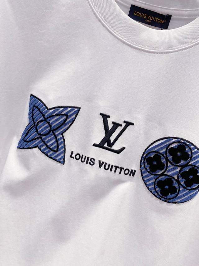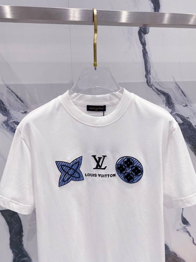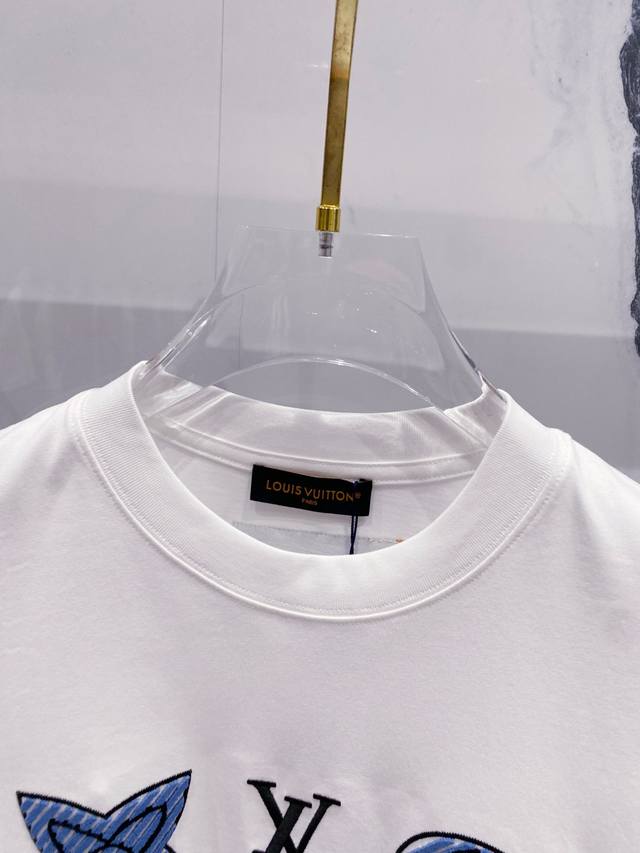 25 Spring and Summer Light Blue Heart Embroidery Cotton T-shirt..