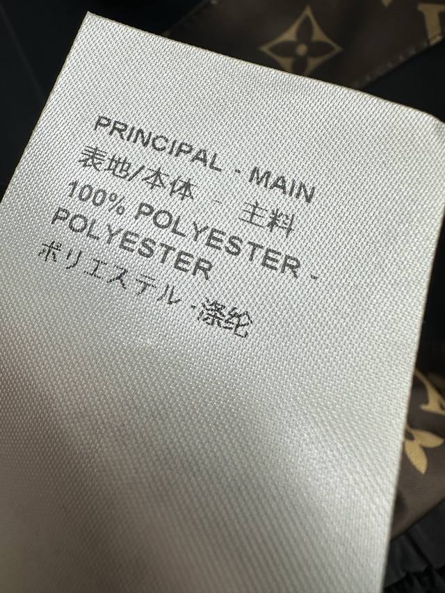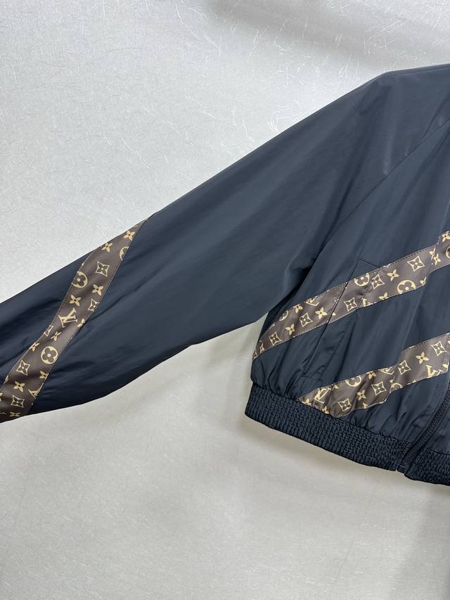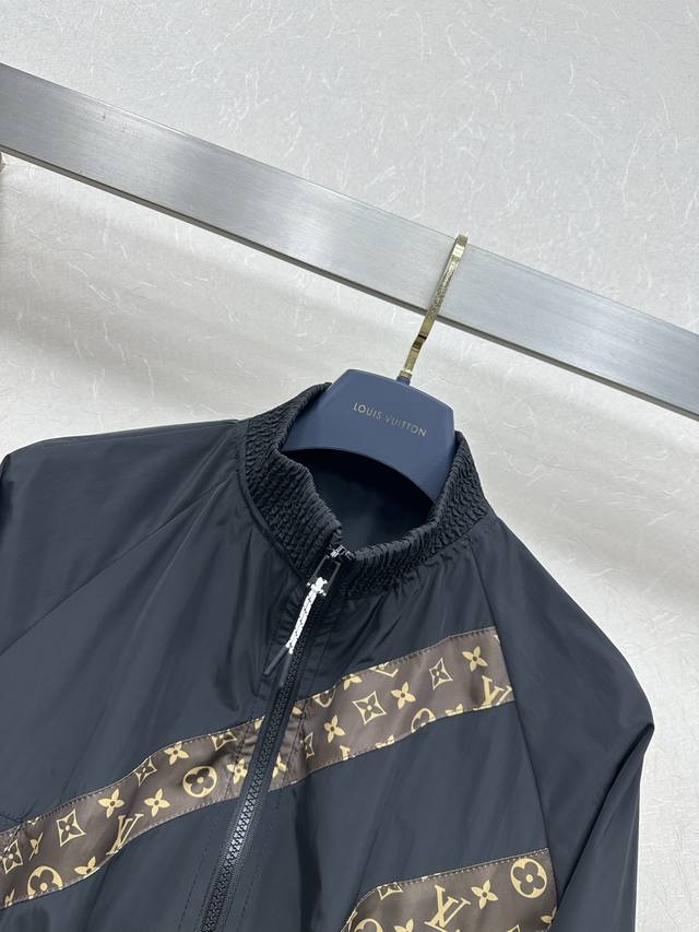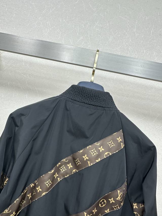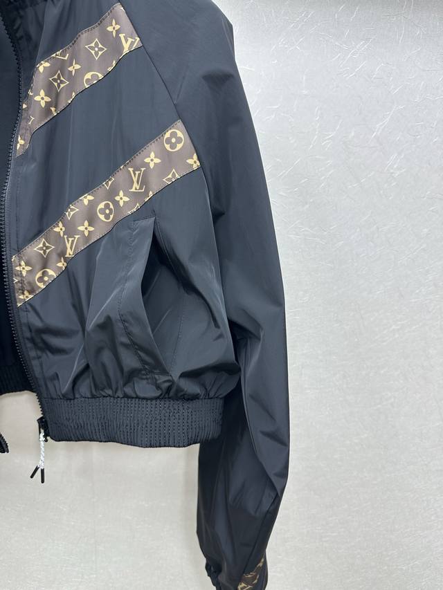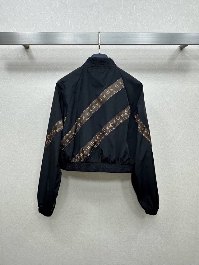 25Ss Lv New autumn and winter short jacket with a functional style. This black contrasting monogram short jacket has a monogram patchwork design with hidden details and zipper pockets. The short version is handsome, versatile, and tall and neat. Sml.