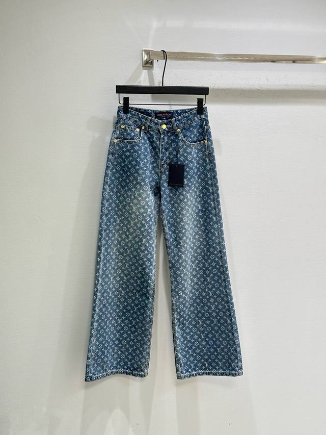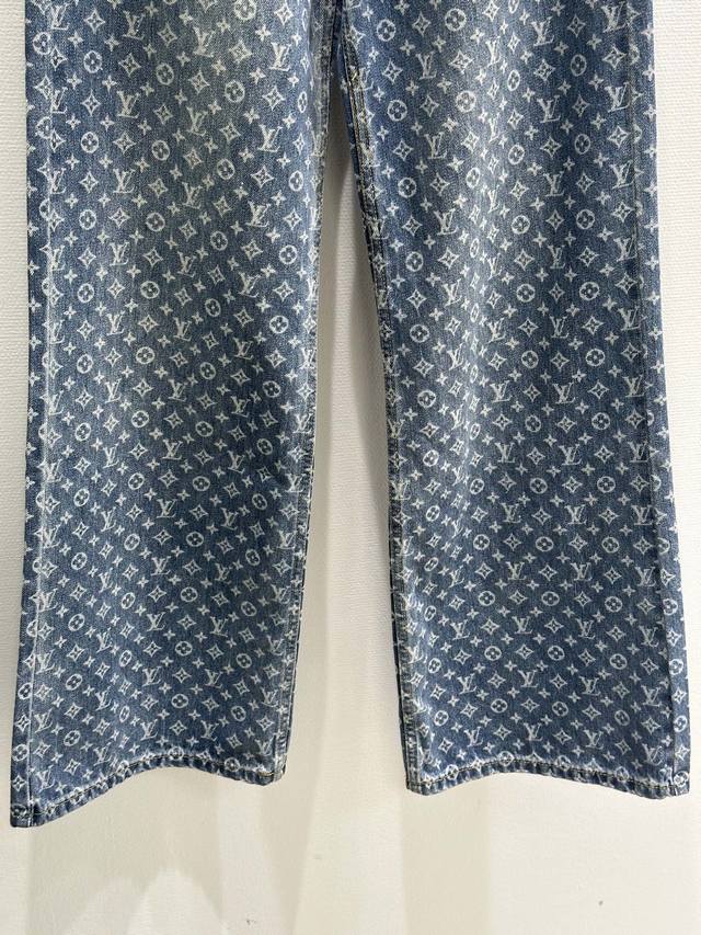 25Ss New Winter Arrival! This LV monogram print denim jeans is super cute! The blue gradient is very stylish and adds a lot of depth! The high-waisted straight leg cut flatters all body types and is easy to wear for everyday commuting or casual occasions. Available now in blue S, M, L, DDD