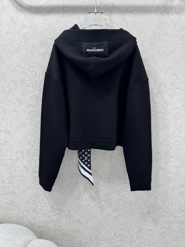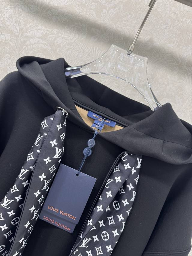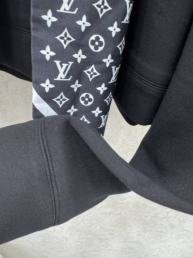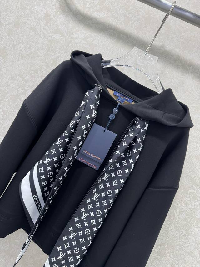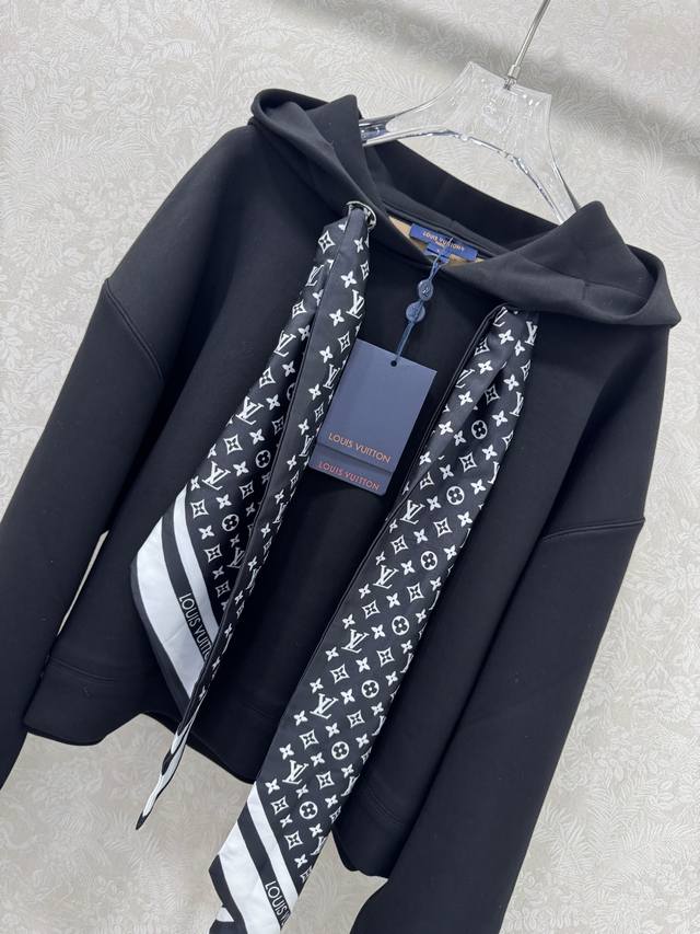 A real shot of the new Louis Vuitt*N25 Monogram scarf-style hooded sweatshirt in black! Custom-made imported composite space cotton fabric with superb texture! Paired with a silk scarf, it creates a classic, chic, and sophisticated sporty look! The classic sweatshirt shape is versatile and flattering, creating a flattering effect! Highly recommended for a casual and stylish look. We also offer a matching skirt from the same series, perfect for the sweatshirt set in two colors and three sizes. Smlb.