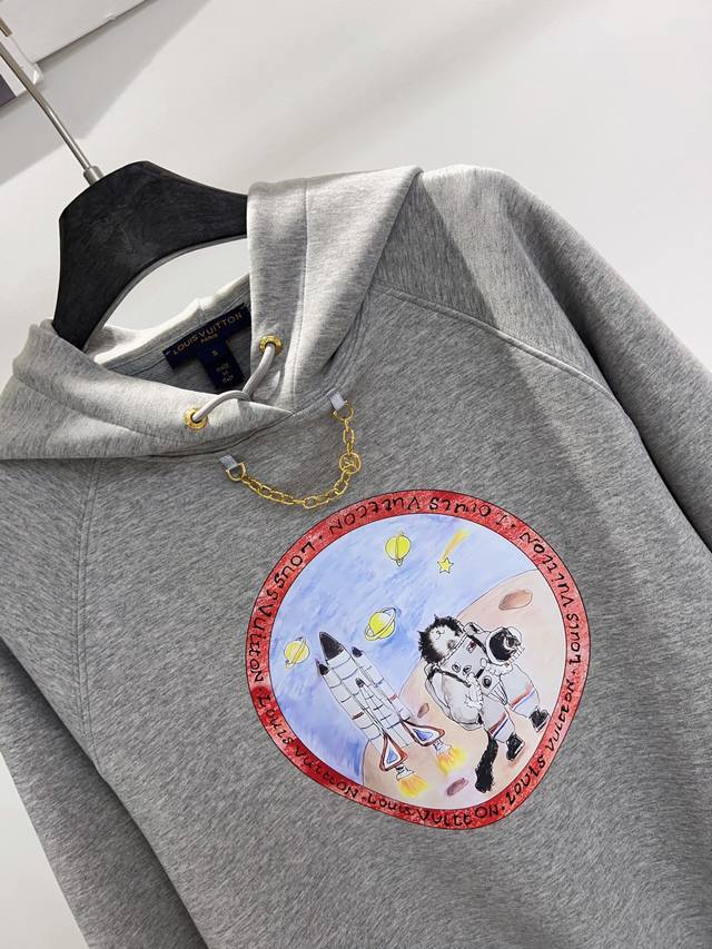 Exclusive First Release, Original Quality Louis Vuitton* 25 New Cat Stamp Chain Hooded Sweatshirt. The dropped shoulders and loose silhouette highlight the relaxed and casual yet stylish feel. Suitable for all body types! Sml