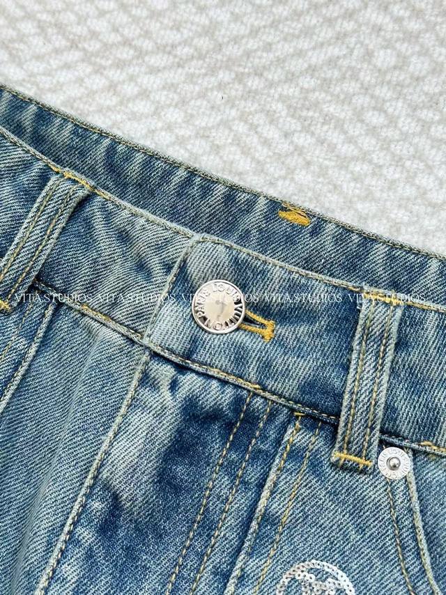 Hot Item In Stock DDD Pocket Print Jeans Ddd Selected 100% Premium Cotton Fabric Ddd Pure cotton material is breathable, soft to the touch, and skin-friendly yet resilient Ddd Selected high-count combed cotton fabric, repeatedly polished using an ancient gradient washing process Ddd presents a distinctly layered vintage distressed effect Ddd Features three-dimensional cut patch pockets on the front and back, with a structured shape and maximum practicality Ddd All pocket edges are hand-set with custom metal rivets Ddd After the finished product is washed, the two front pockets and the right back pocket are manually disassembled by craftsmen Ddd for beadwork Ddd The pocket pieces are then hand-sewn back to the pants body, with a hidden stitching technique, making the pocket pieces and pants body seamlessly integrated DDD Color: Blue Ddd Size: SML Ddd Lv*Kz DDD
