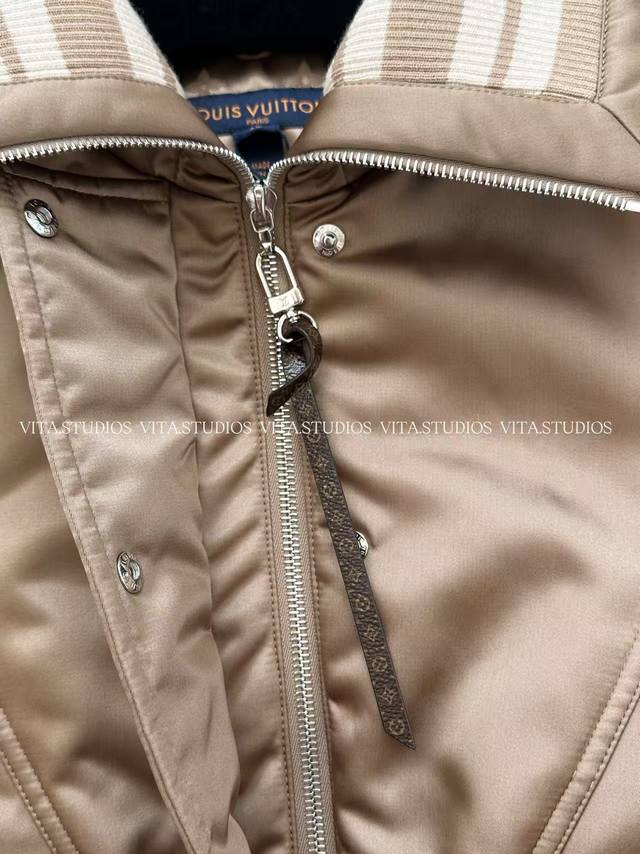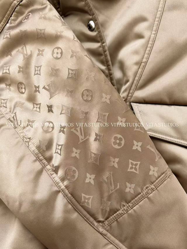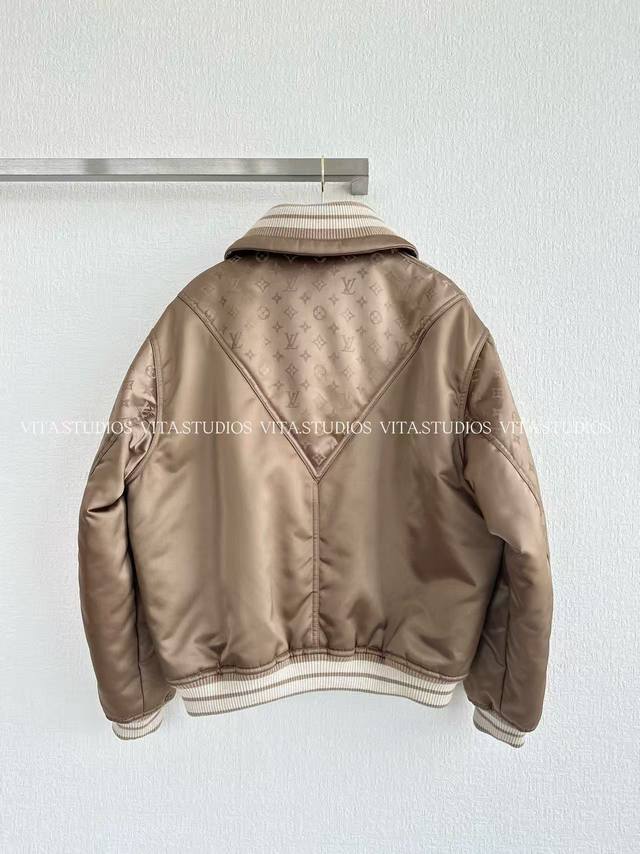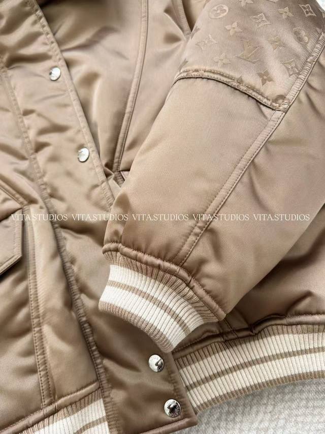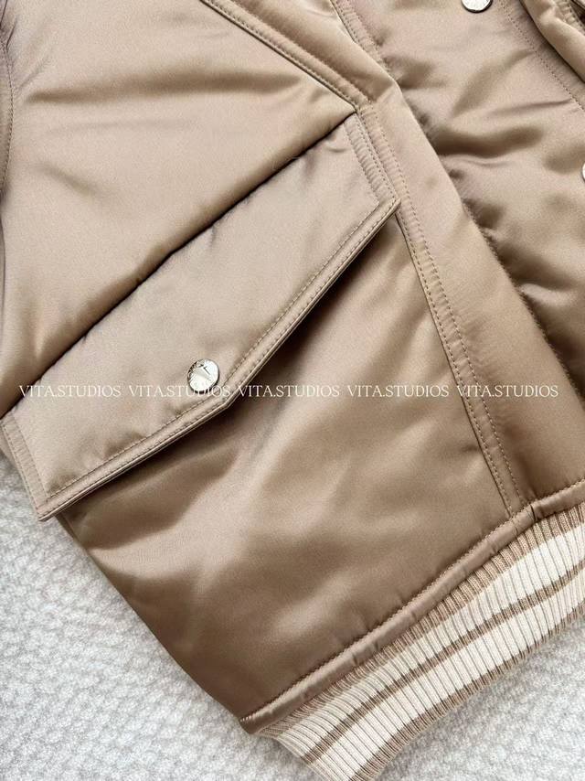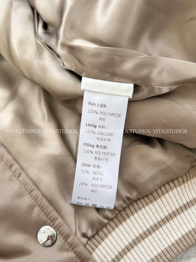 Hot Item, Limited Stock Available DDD Lapel Patchwork Jacket Ddd Made of 100% Polyester Fabric with a Delicate Lustrous Surface Ddd Excellent Crispness, Keeping the Jacket's Shape Sleek Ddd Made of High-Loft Down Cotton, Ultra-Fine Hollow Polyester Fibers Processed with a Special Technique, Soft to the Touch Like Down, Warm and Insulating Ddd Brand's Signature Print Patchwork on the Sleeves Creates Visual Layers with the Main Fabric Ddd Luxurious Texture Subtly Integrated Ddd Custom Ribbed Textures on the Collar, Cuffs, and Hem, Excellent Elasticity and Full of Retro Charm Ddd Front Center Metal Zipper with Windproof Door Tag Ddd Back Center Triangular Patchwork Stitching Design Ddd Full-Pack Lining Craftsmanship Ddd Raw Edge Finish on the Lining Edges, Skin-Friendly and Friction-Free Wearing Experience Ddd Enhances Wearing Comfort and Shape Stability Ddd Front Pocket Flap Design, Practical and Stylish Ddd Sleeve Print Patchwork Pattern Alignment, Exquisite Craftsmanship Details Ddd Color: Champagne Ddd Sizes: S, M, L, Ddd, Lv*Wt, DDD