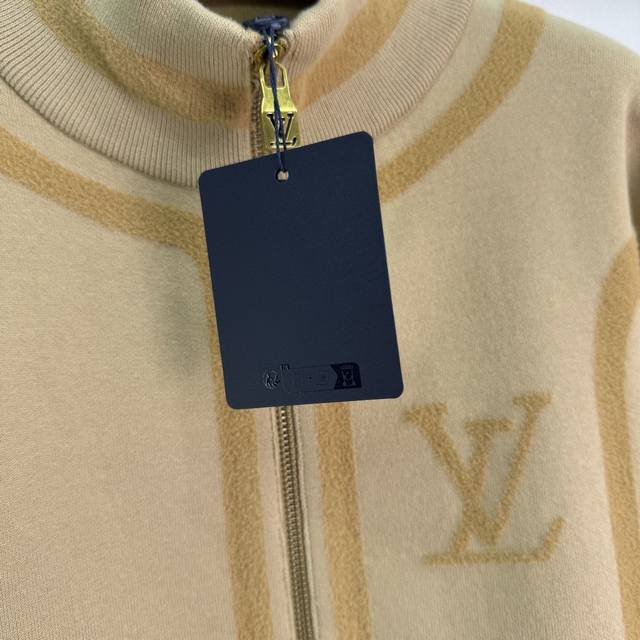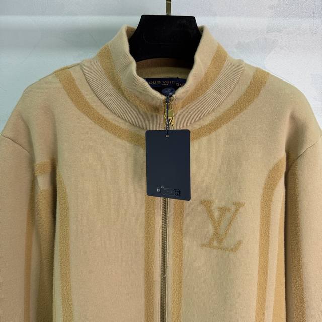 Lou*2026 Early Spring Collection Knit Jacket. Made with high-quality, soft, and warm fabric, this light yellow jacket features a striped design and a highly recognizable Louis Vuitton embroidery on the chest. The stand-up collar with zipper closure offers a casual yet sophisticated look. The loose fit is comfortable and flattering for all body types. It pairs effortlessly with jeans or casual pants for a chic and sophisticated style! Available in 1 color and 3 sizes: S, M, L, T226B, DDD