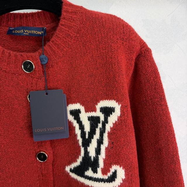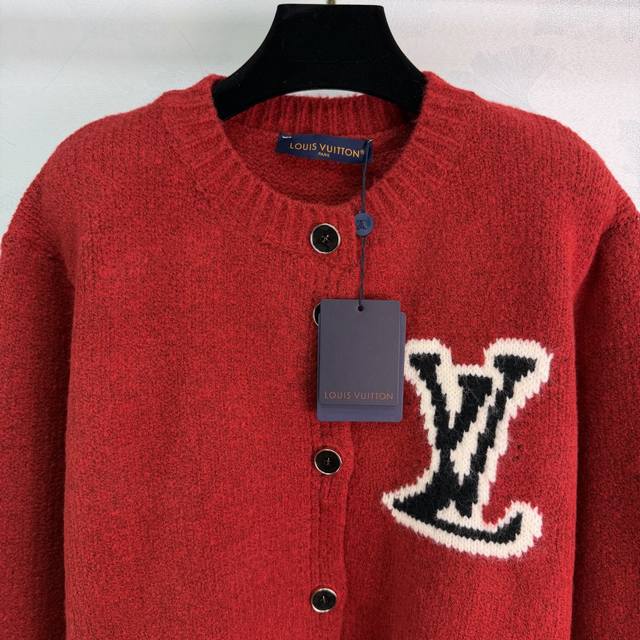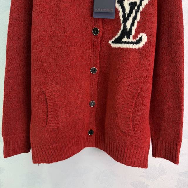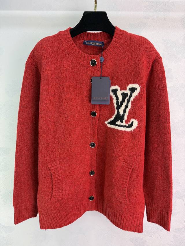 Lou*25 Autumn/Winter New Knit Cardigan. Soft knit fabric, Lv jacquard on the chest, highly recognizable brand. Slightly loose fit, practical and stylish with hand pockets, perfect for everyday wear or festive occasions. The red version is perfect for New Year's and holidays, and looks great with jeans or casual pants! 2 colors, 3 sizes: S, M, L, T226B, DDD