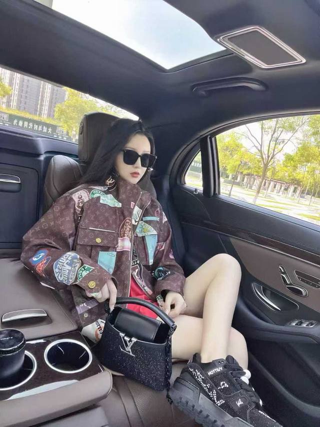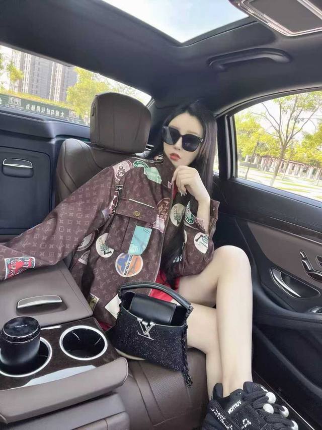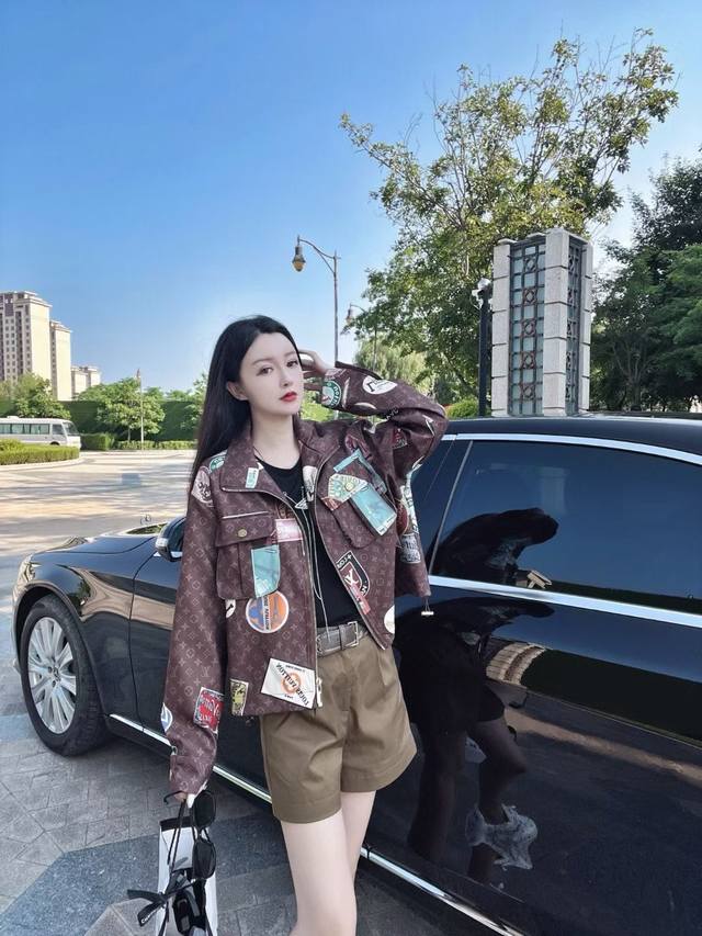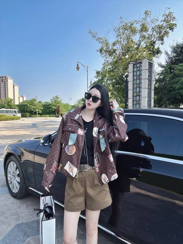 Loui* Vuitt*N25 new classic poster icon monogram print jacket with three-dimensional tailoring, a cinch-fitting hem, and custom hardware. Custom chest pockets with custom hardware. Super textured, slimming, and stylish. Wear it alone or layered for a retro and elegant look. A wardrobe essential! Available in three sizes: Sml