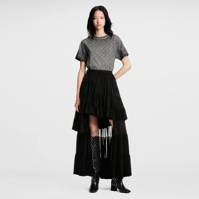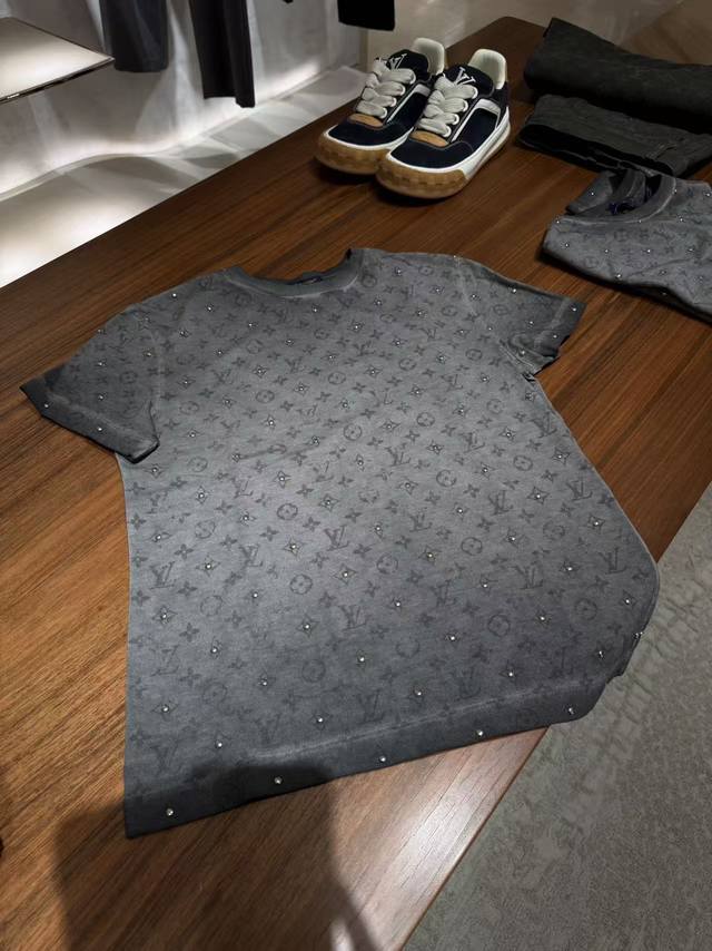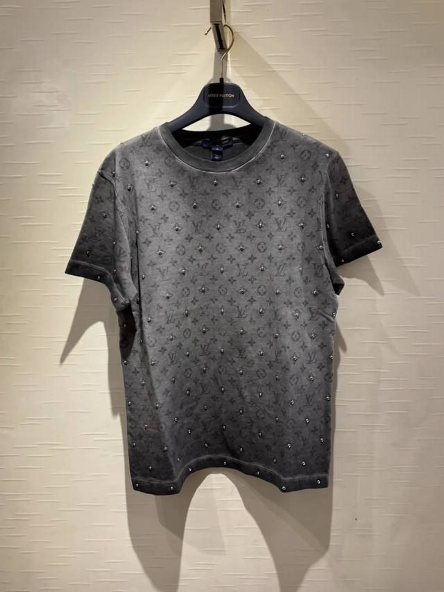 Louis* High-quality replica Louis Vuitton Lv26 Spring/Summer new style, heavy-duty metal studded monogram logo print fashionable and versatile short-sleeved T-shirt! Grey, Size M: Shoulder width 42, Bust 94, Sleeve length 19, Length 63 DDD