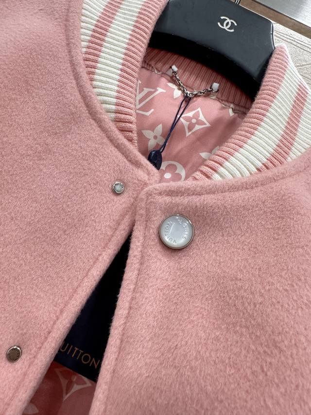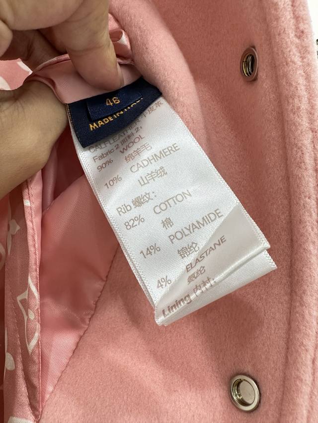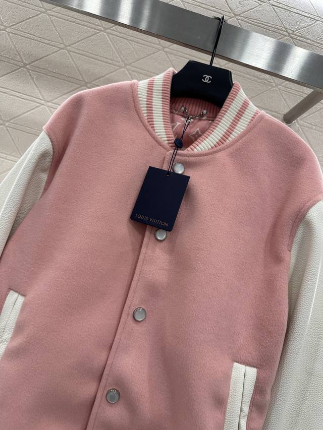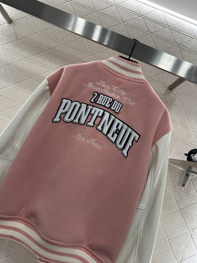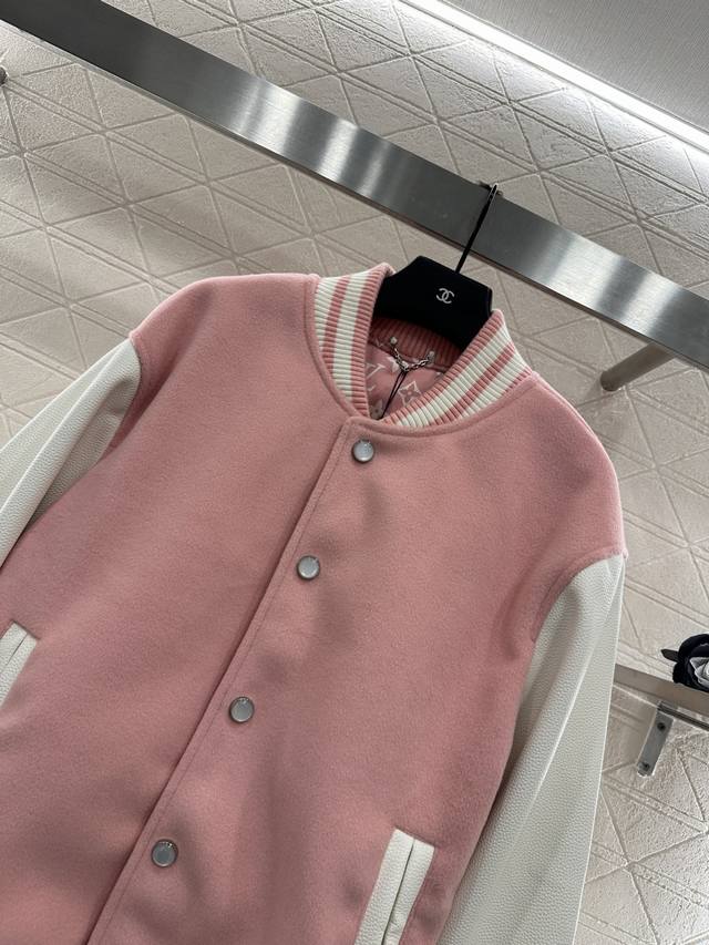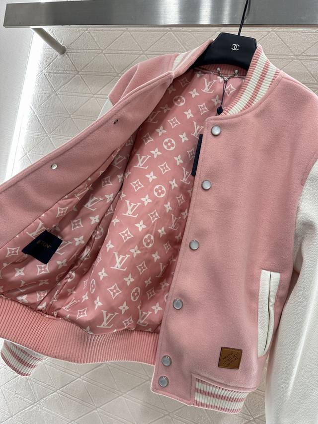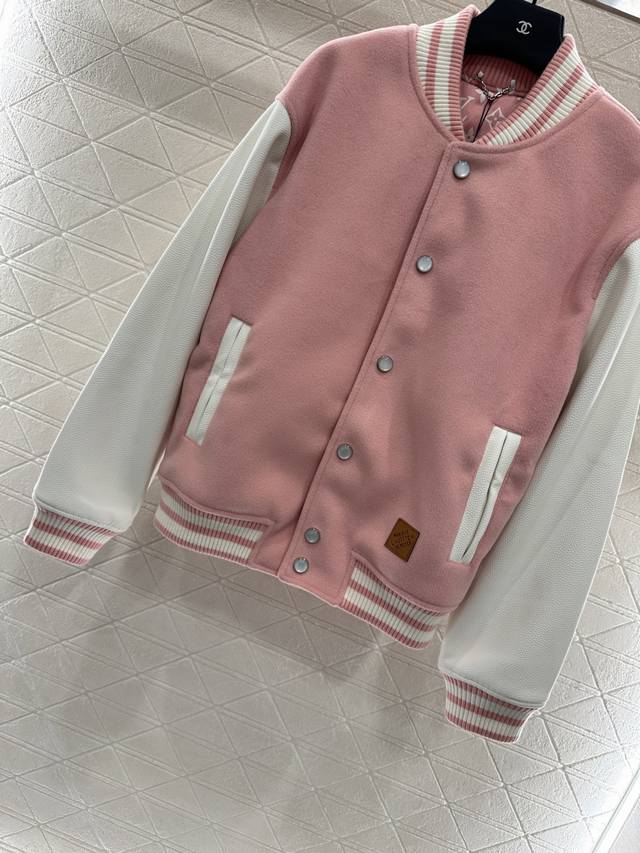 custom-made. Made of imported Yb cotton and wool, it's a premium, high-quality material. The stand-up collar baseball jacket features a clean silhouette, utilizing contrasting leather sleeves and raglan sleeves to easily define the right-angled shoulder line. The hemmed stripes and threaded elastic design make it easy to put on and take off. The all-over monogram print on the inside echoes the iconic four-leaf clover and lettering, highlighting the brand's luxurious style. It's more fashionable and meets the diverse needs of daily commuting. Customized fabrics and accessories. Look for the high-end version, available in two colors.