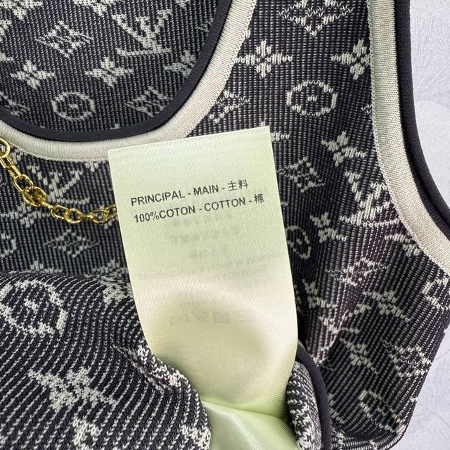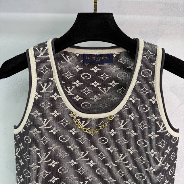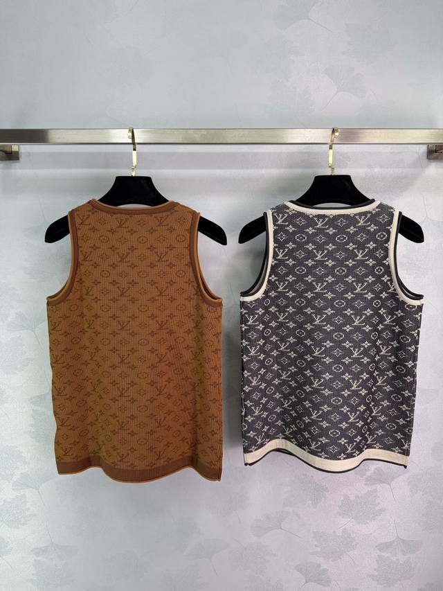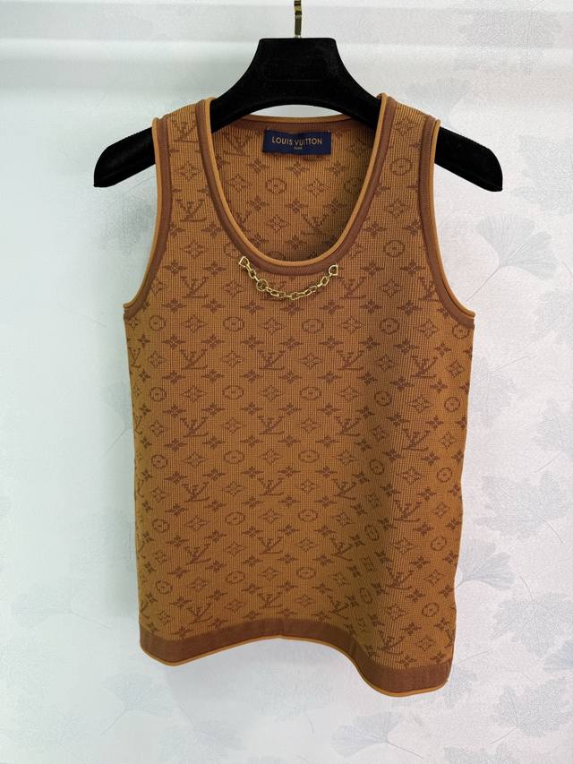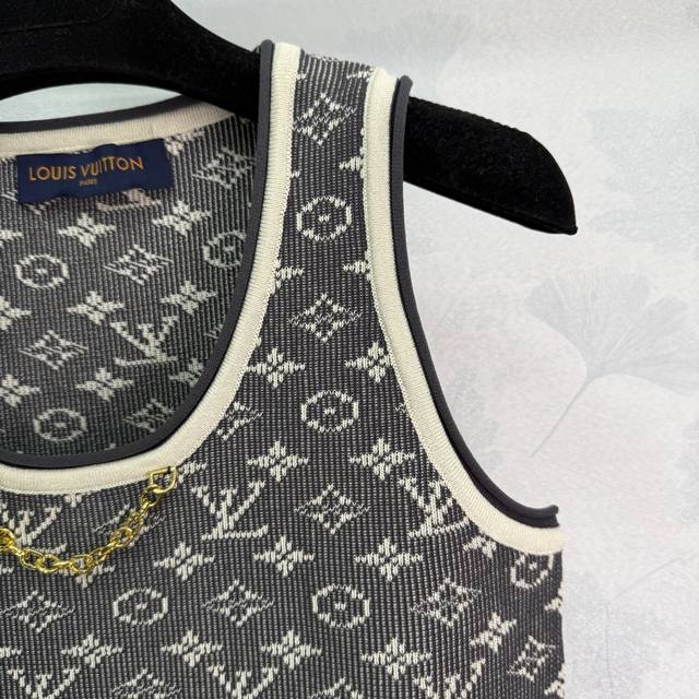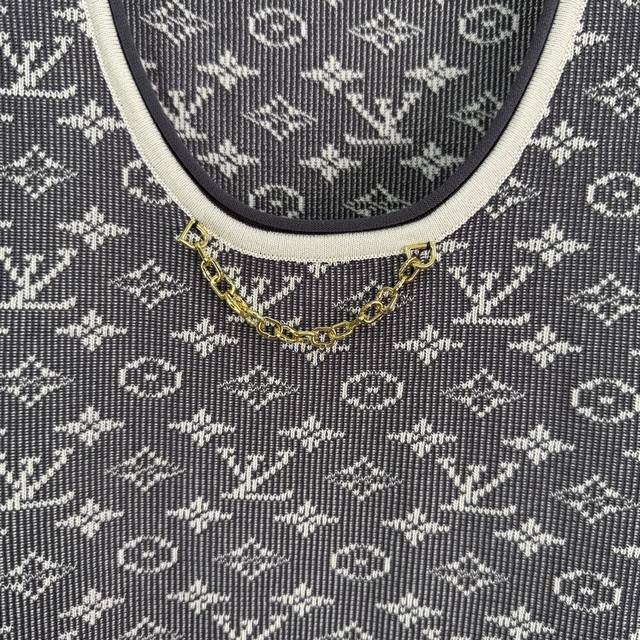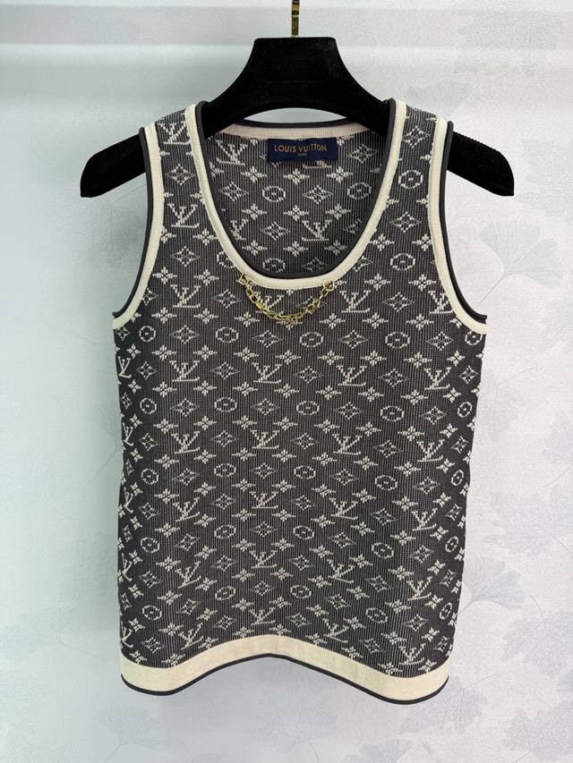 Louis Vui*Ton 2025 Spring and Summer latest collection! Jacquard chain knitted vest! Custom wool yarn weaving texture, high-end and comfortable round neck knitted vest tailoring, all-over decoration, iconic four-leaf clover element, letter logo pattern, logo chain embellished on the front of the collar, highlighting the brand personality, highlighting the high-end sense of wear, the vertical pit texture design of the hemming makes the simple style wear out the personality, exquisite wear, showing the relaxed tone, light luxury and fashionable temperament, can be worn alone or layered! 2 colors and 3 sizes Sml T226B.