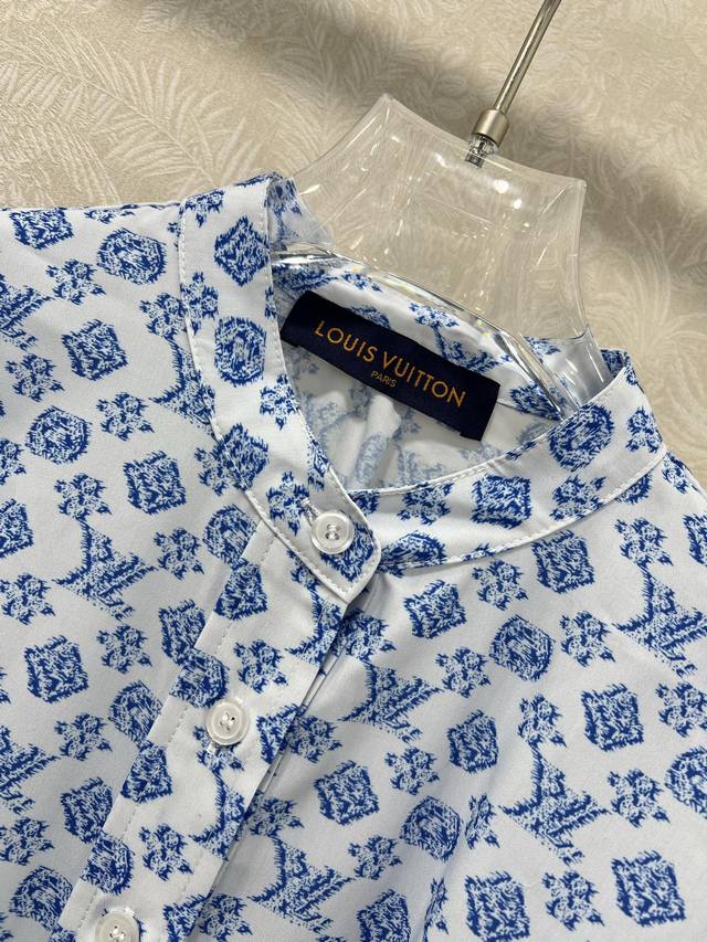 Louis Vuitt*N 25 new style small stand-up collar waistcoat dress Monogram macaron old flower print dress Super beautiful color Low-key and fashionable and luxurious Matching with this fabric belt Can be waisted or loose The upper body is age-reducing and absolutely beautiful! The classic version is fashionable and advanced! A must-have for white, rich and beautiful women! Highly recommended for self-retention! The workmanship quality depends on the details. Single color 3 code Sml