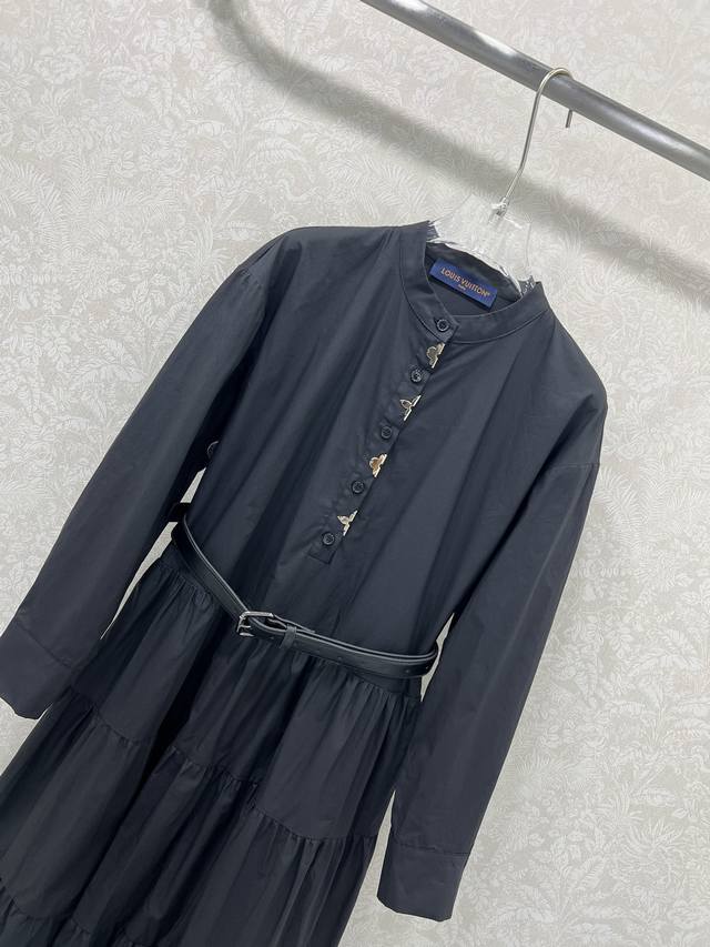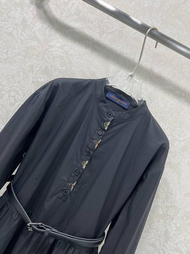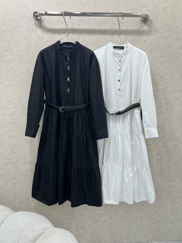 Louis Vuitt*N Louis Vuitton 25 new pure cotton long-sleeved dress, super simple and elegant solid color series. The metal hardware leaf on the chest is customized with the logo hardware and leather belt. The skirt has exquisite layered pleats. It is not only high-end and very retro, but also has a very elegant atmosphere! It is completely suitable for all audiences, whether it is for leisure or work, and it can easily handle the full sense of luxury. The top is fashionable and versatile. The high-quality workmanship is obvious in the details. It comes in 2 colors and 3 sizes Sml