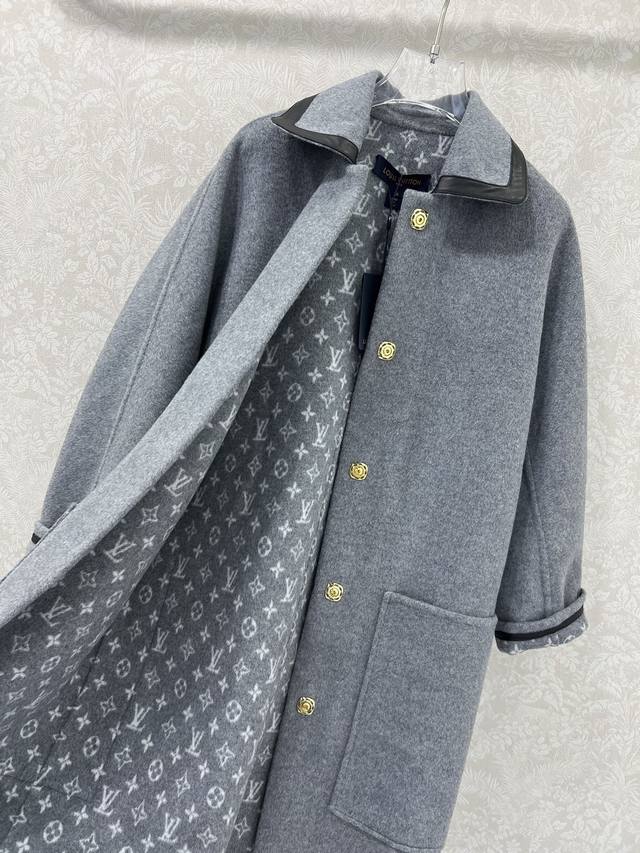 Louis Vuitt*N25 latest autumn and winter model, a wool coat with a monogram lining, custom-made with imported wool fabric and lambskin leather trim. Long, H-shaped silhouette, the simple cut highlights the fabric's premium texture. One side is fully printed with four-leaf clover elements and a monogram logo, highlighting the brand's understated luxury. Exuding the gentleness and delicacy of a Korean heroine, it easily switches between styles, allowing you to wear it two ways, showcasing your elegance. Whether you're traveling for daily life or negotiating business, you'll be the center of attention. Available in one color, high-end version. Look for the single color version in 3 sizes (Smlb