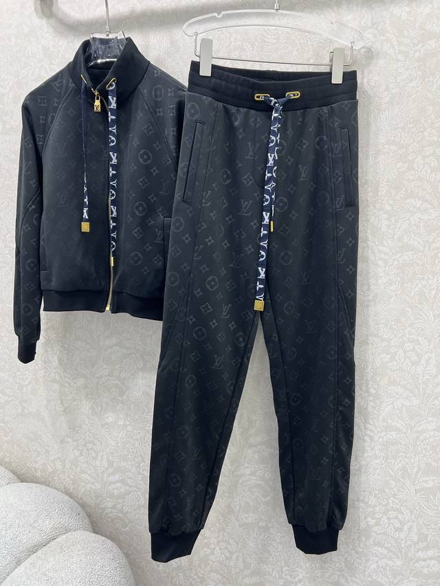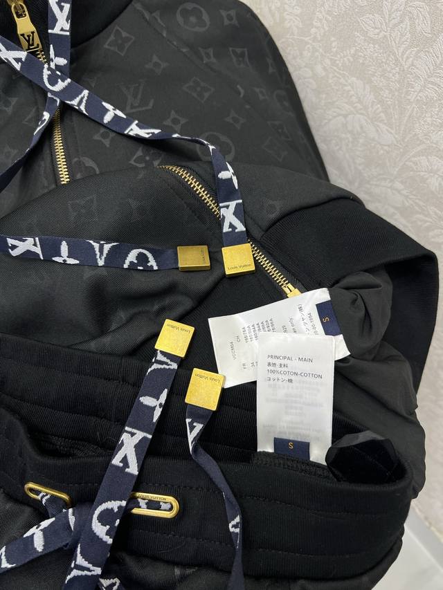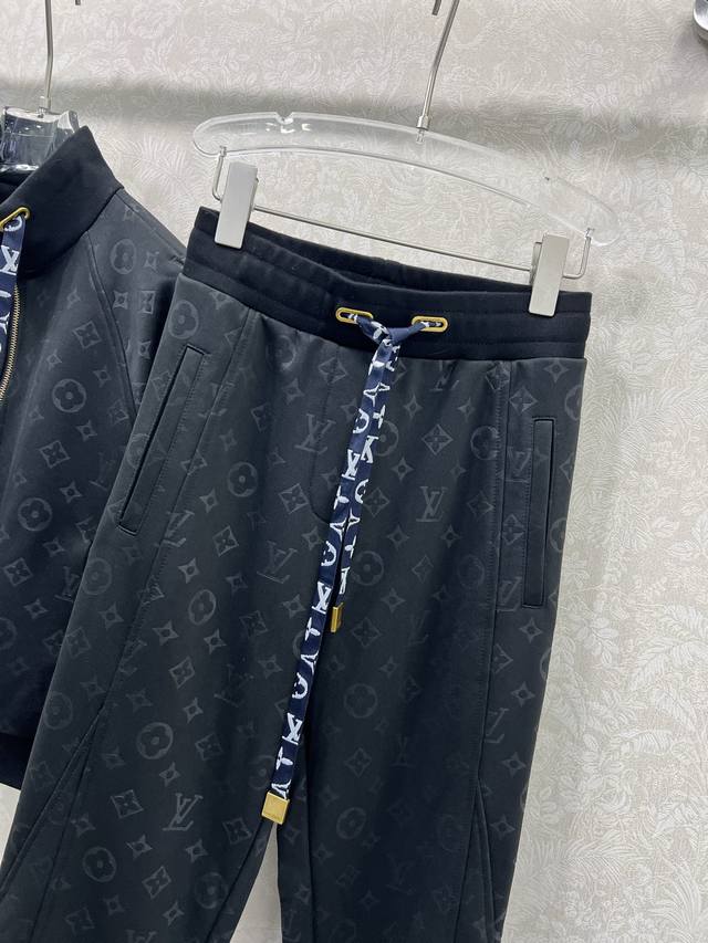 Louis Vuitt*N*25 New Casual Sportswear Set for Sale. This set includes a hooded jacquard drawstring long-sleeved pullover trousers. Both the top and trousers feature a subtle monogrammed logo print