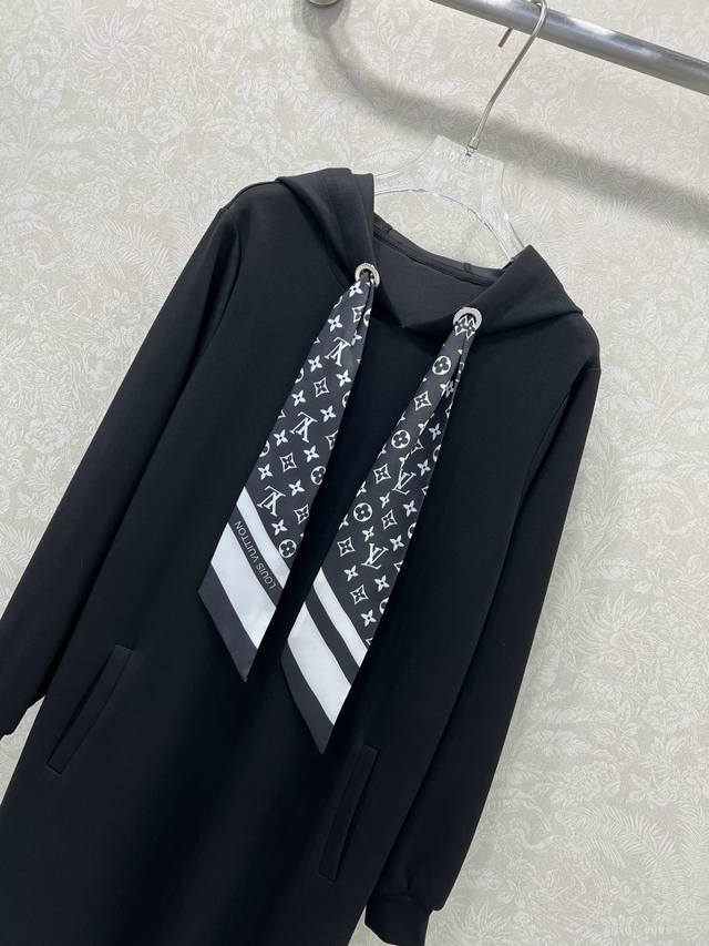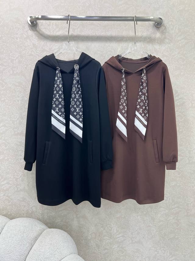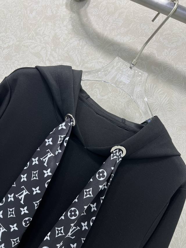 Louis Vuitt*N*25 new style with monogram scarf hooded dress. Monogram logo scarf decoration is so beautiful~~Casual retro and fashionable. Simple contrasting color lines and outlines are very sporty. A must-have for lazy people. Instantly get a sweet and rebellious girlish look. Whether it is daily leisure or commuting, it can be combined with special yarn customization and high-elastic air cotton fabric. The casual atmosphere is full of high-end version. Look for quality. 2 colors and 3 sizes Sml