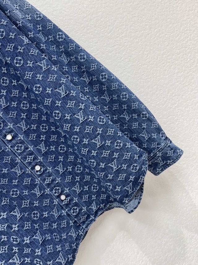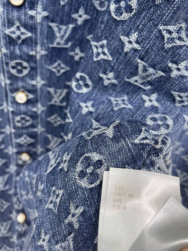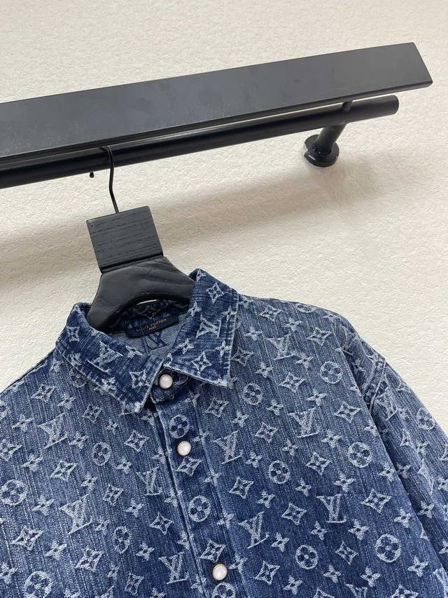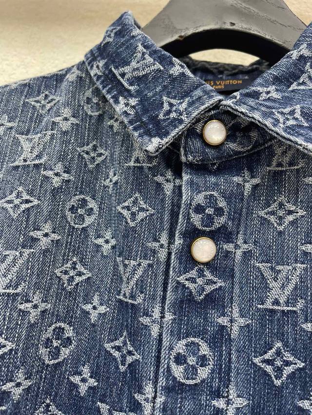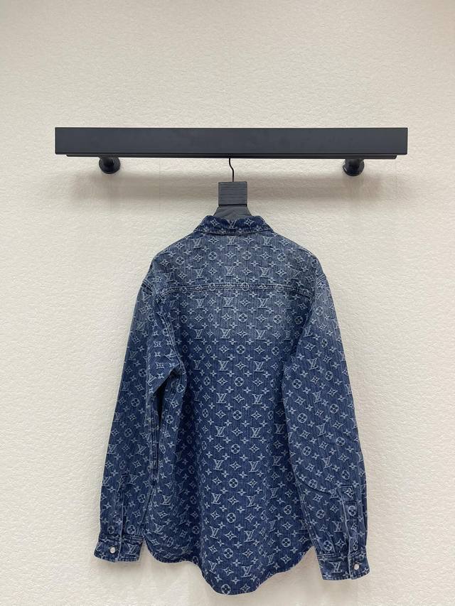 Louis Vuitt*N26 Early Spring New Arrival Heavy-Duty Gradient Jacquard Long-Sleeve Shirt Denim Jacket! Classic denim blue washed denim fabric, slightly loose H-line design, sweet or edgy, looks amazing! Custom white beaded buttons, all-over classic brand logo jacquard effect, super slimming! Highly recommended! Sizes: S-XL Aa DDD