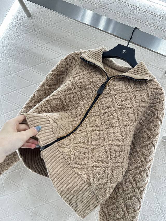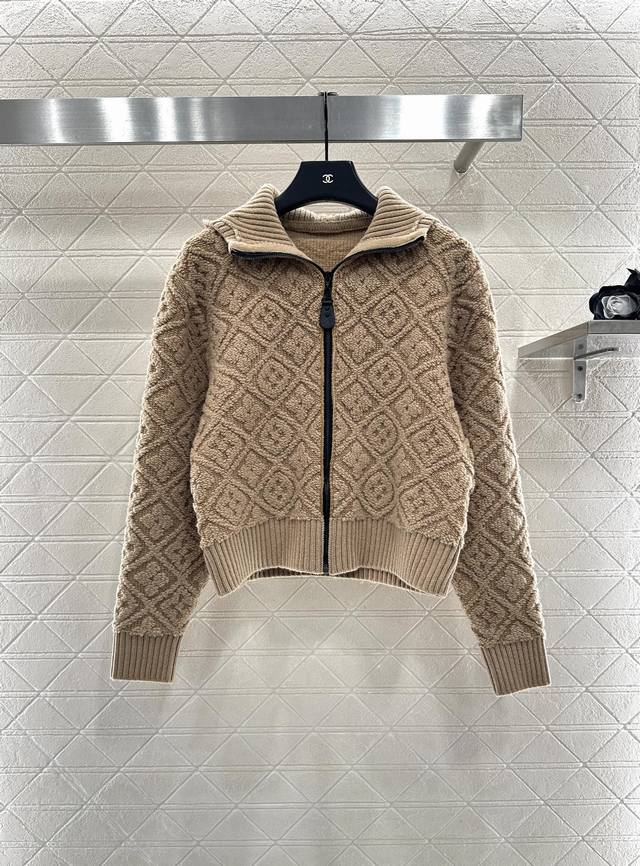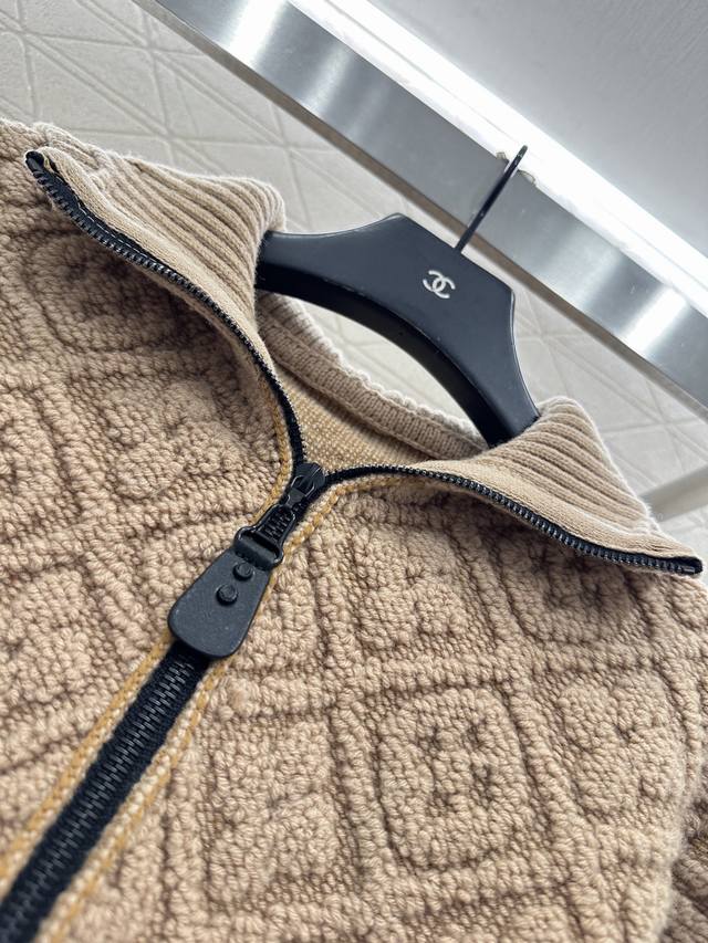 Ski Collection # Custom Yb cashmere and wool yarn, jacquard finish for a three-dimensional texture, hooded jacket style, ready-to-wear zip-up opening, tapered with elastic ribbed trim, black leather buttons maintain a unified tone, overall sophisticated and casual look, all-over four-leaf clover jacquard embellishment for a fashionable touch, elastic fabric for a more accommodating fit, creating the brand's trendy style. Custom fabric and accessories, look for the high-quality version, 2 colors