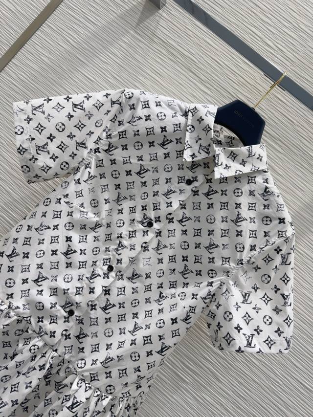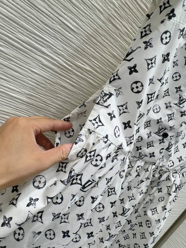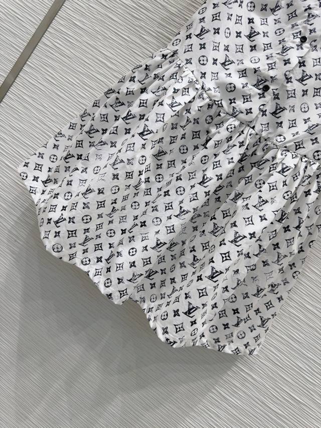 Louis Vuitto* 2025Ss new dress Monograw penetration printing high-end atmosphere full of wear high-end sense of innovation fabric light and soft real thing is very good! The upper body is fashionable and versatile, beautiful! High-quality workmanship see the details Sml S back middle length 84 shoulder width 41 chest 90 sleeve length 20