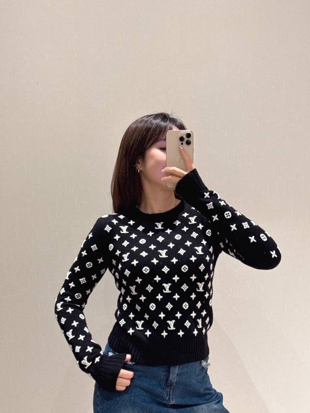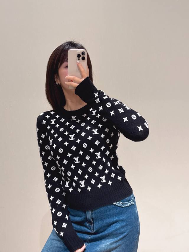 Louis Vuitto* 25Fw Early Autumn New Arrival 3D Embossed Monogram Logo Embroidered Cashmere Sweater | Exclusive High-Quality Production! Made with custom-spun heavyweight cashmere yarn, the sweater is lightweight and soft. Custom-dyed black, white, and brown yarns are used, and imported machines create a smooth and delicate plain weave. The front, back, and sleeves feature a meticulously crafted, three-dimensional embossed logo embroidery with precise color matching. The craftsmanship is exquisite, the texture is full and rich, and the overall look is incredibly refined. The cropped length is slimming and elongating, perfect for wearing alone or as a base layer! Available now in Sizes S, M, D, D.