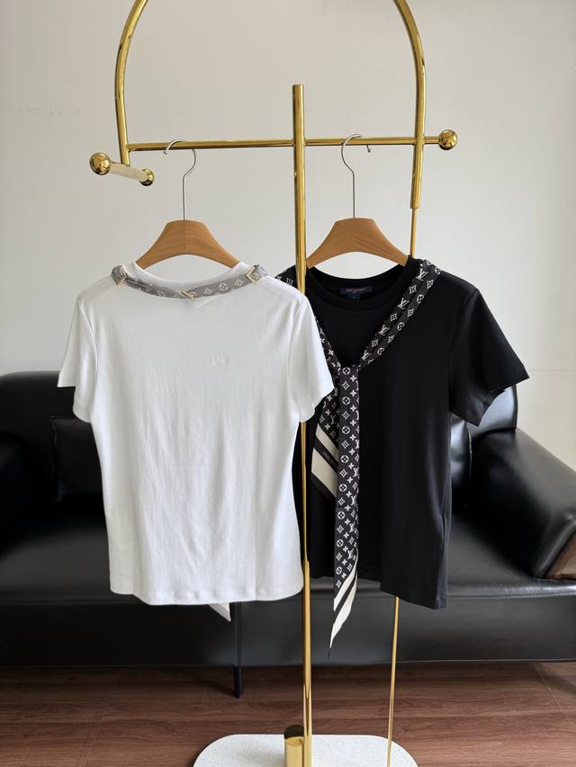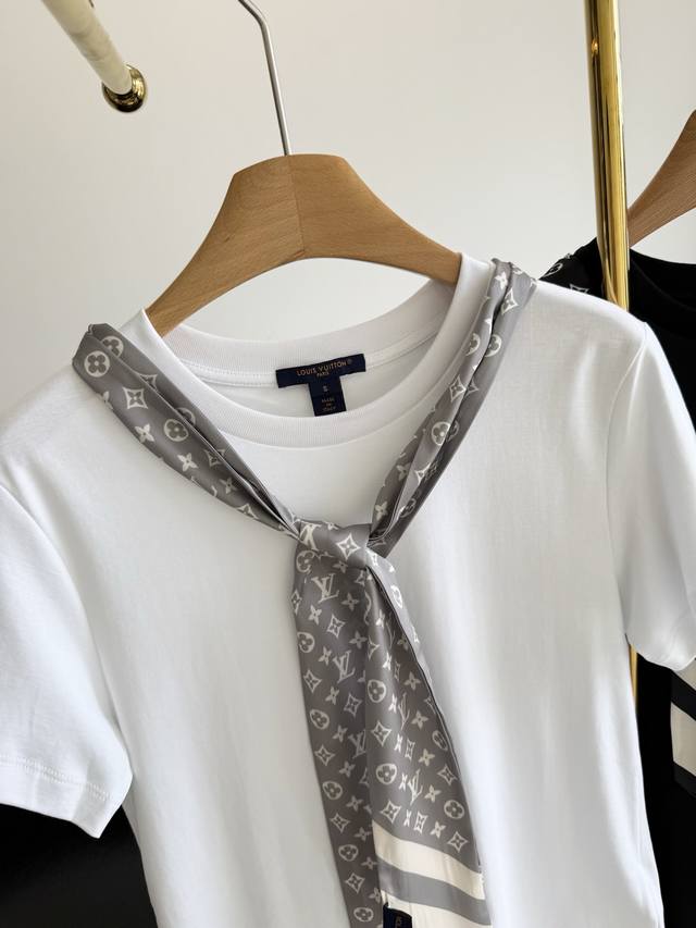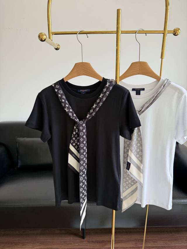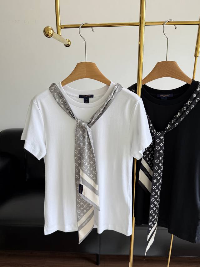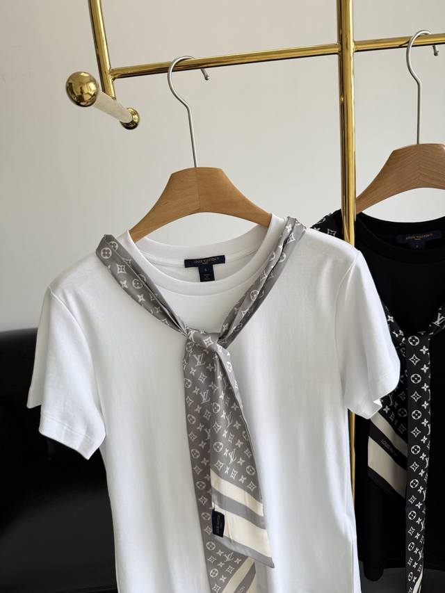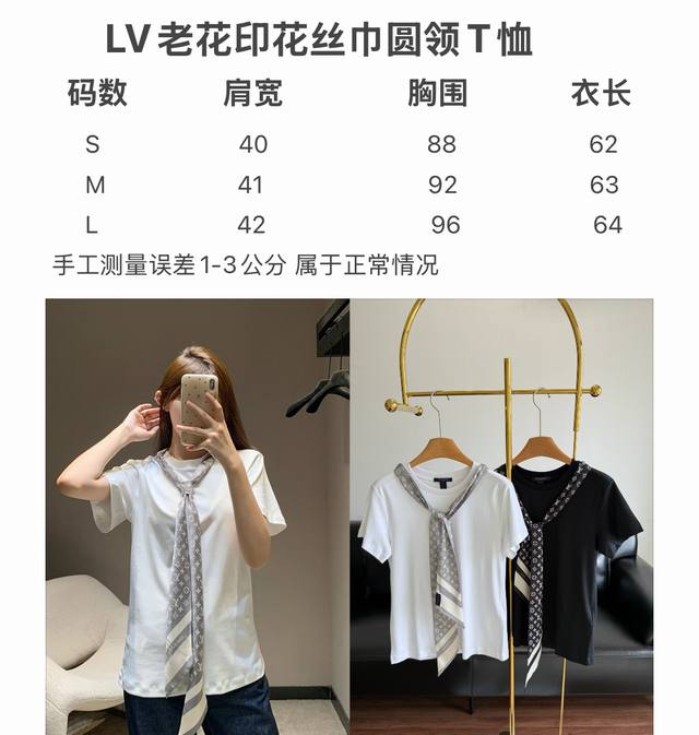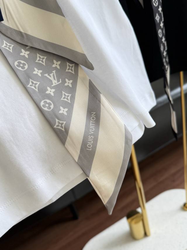 Louis Vuitto* 25Fw Early Fall new monogram print silk scarf round neck short-sleeved T-shirt