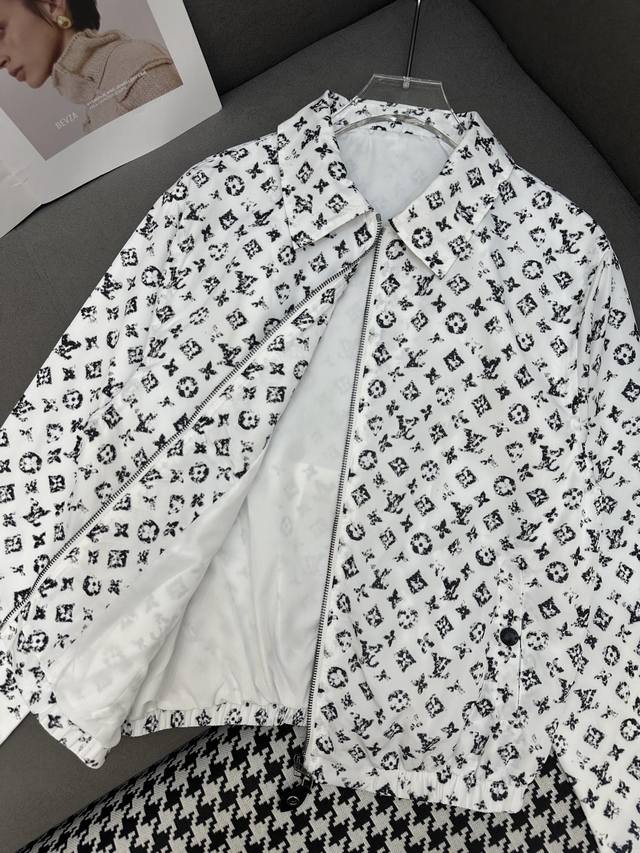 Louis Vuitto* 25Ss new jacket with old flower print fabric decoration, fashionable and generous, single color, three sizes Sml.