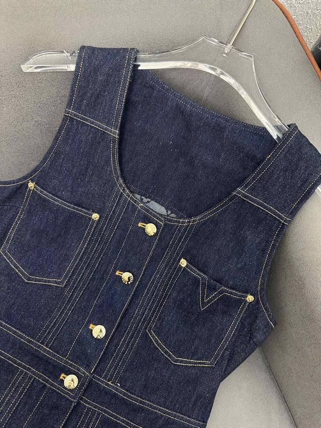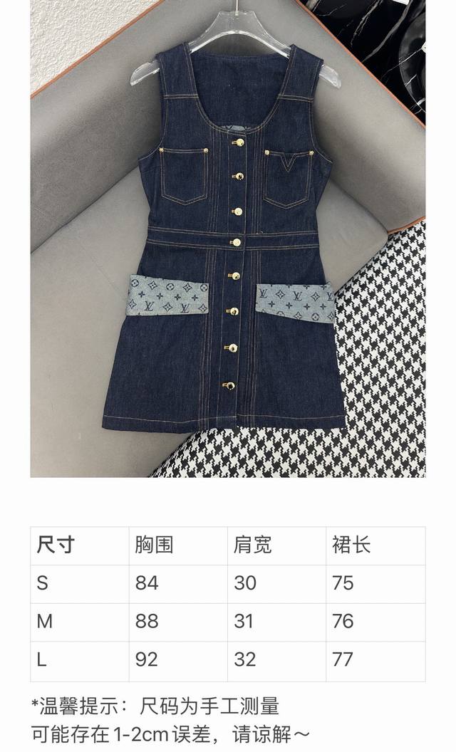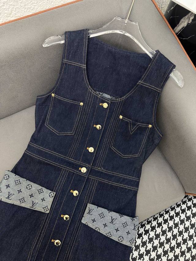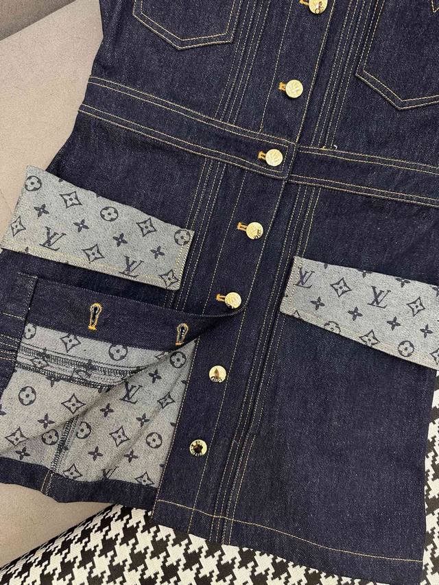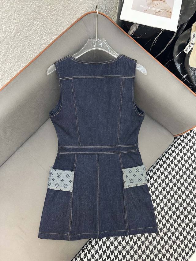 Louis Vuitto* 25Ss New Single-breasted Vest Dress Printed Denim Fabric Splicing Decoration Pressed Seam Decoration Solid Color Three Codes Sml.