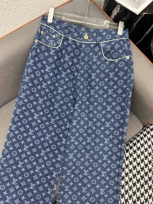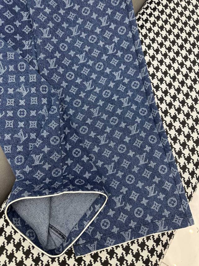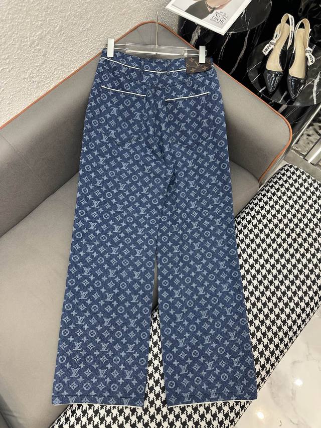 Louis Vuitto* 25Ss new wide-leg jeans with denim monogram jacquard decoration, fashionable and generous, single color, three sizes Sml