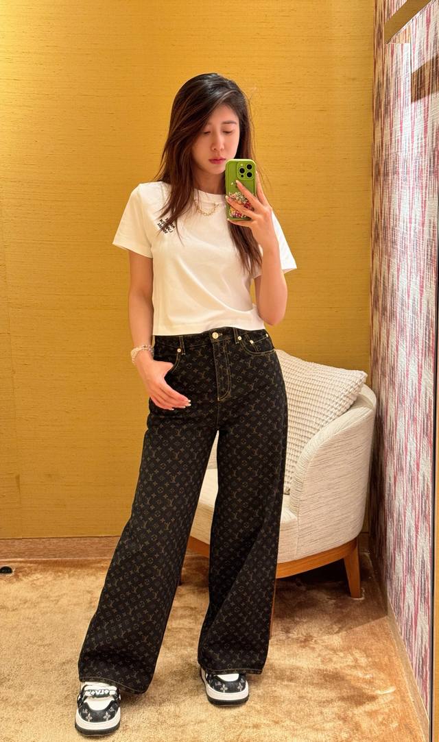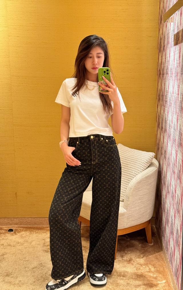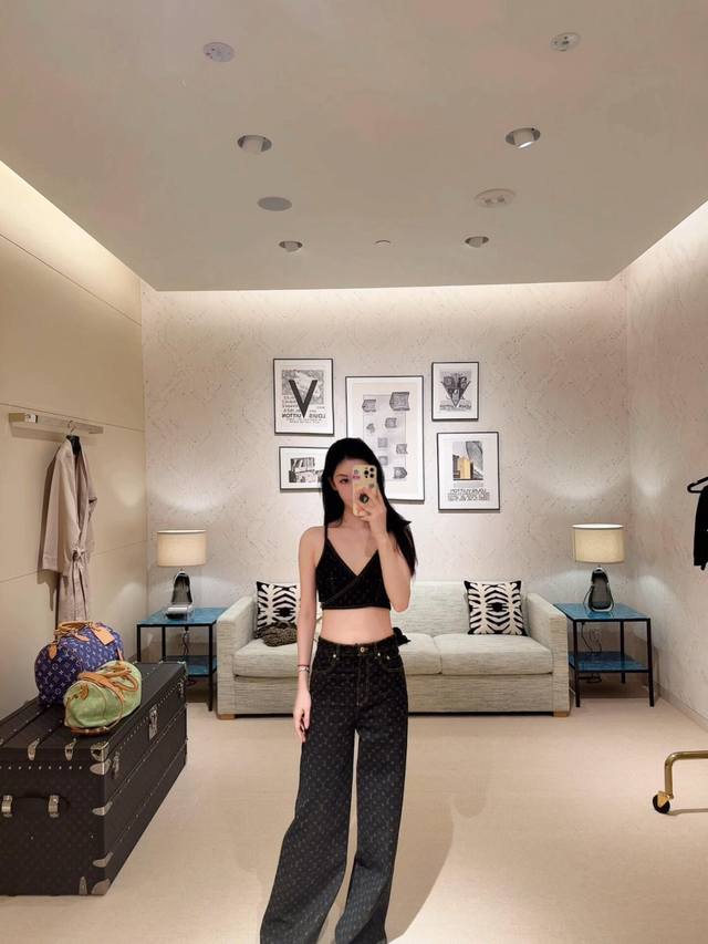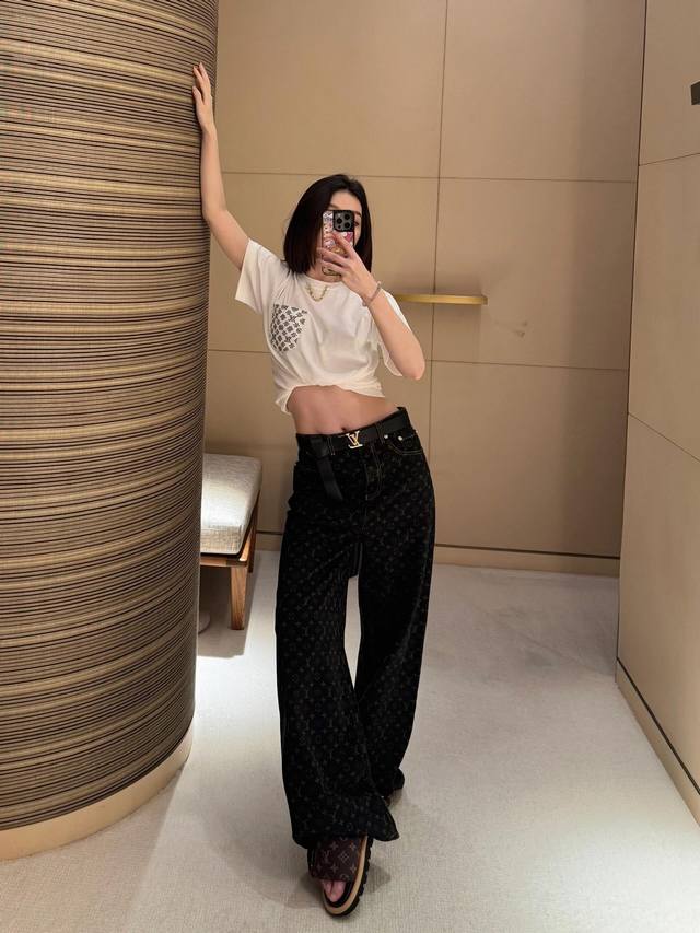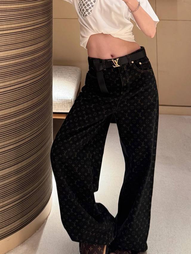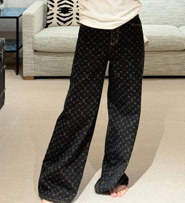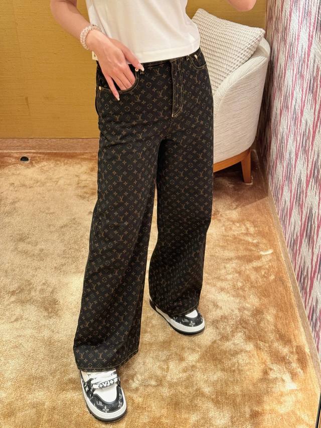 Louis Vuitto* 25Ss Spring and Summer new Monogram retro print denim wide-leg tro