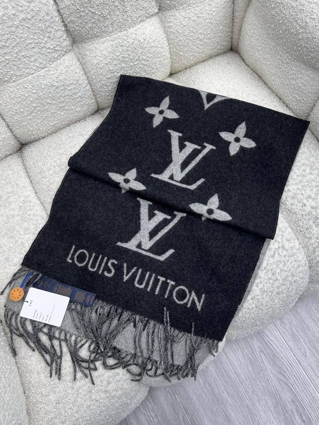 Monogram Giant scarf prominently enlarges the classic Monogram pattern, showcasing a sophisticated and futuristic style with its contrasting back. Made from soft cashmere in a wide cut, it brings warmth to cold winter days.