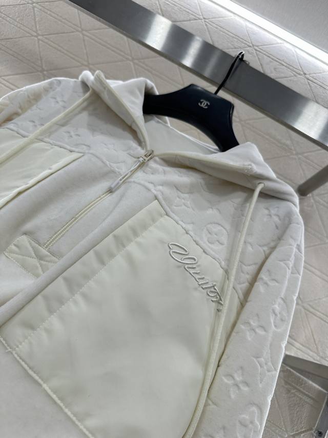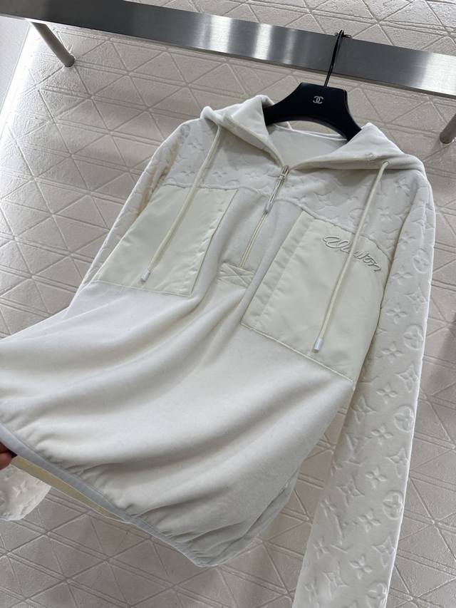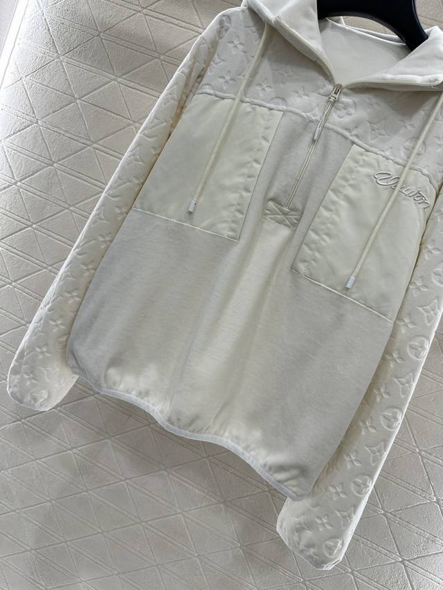 Louis Vuitto* New Arrival Ddd Patchwork Hooded Drawstring Sweatshirt Ddd Custom Yb twill cotton blend material, soft and skin-friendly, smooth and comfortable drape. Hooded drawstring sweatshirt style, half-zip design, fashionable and relaxed. Three-dimensional embossed four-leaf clover logo decoration from the chest to the sleeves. Nylon patchwork pockets with embroidered lettering decoration, instantly enhancing the brand's premium feel and visual appeal. The loose, regular fit is more fashionable and stylish. Custom fabrics and accessories, look for the high-quality version DDD