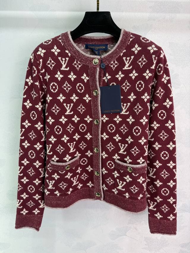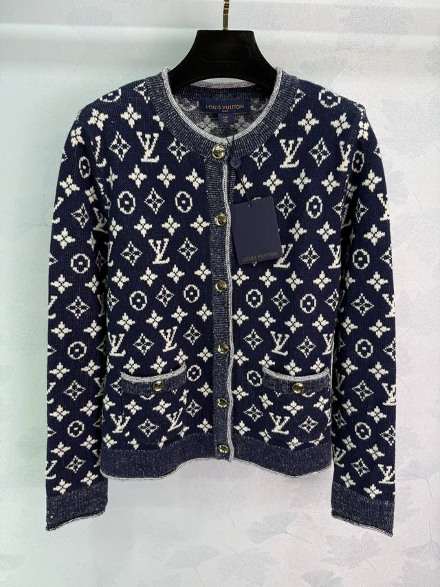 Louis Vuitto*2025 Fall/Winter new round-neck jacquard knit cardigan. Custom-wove