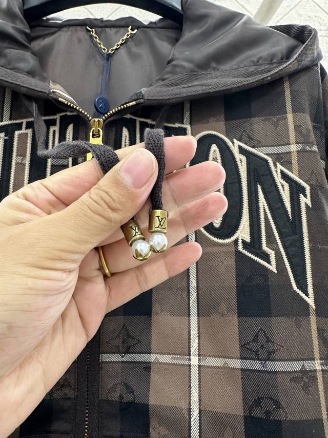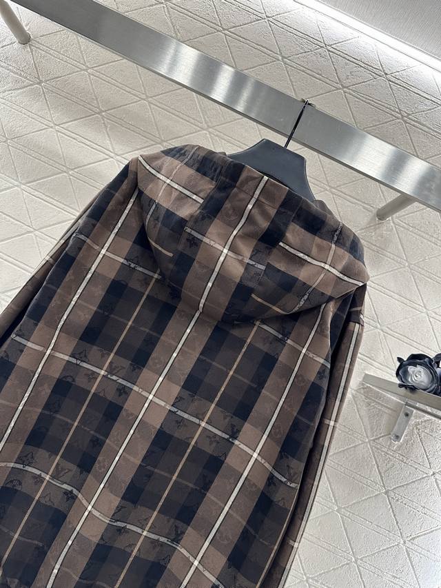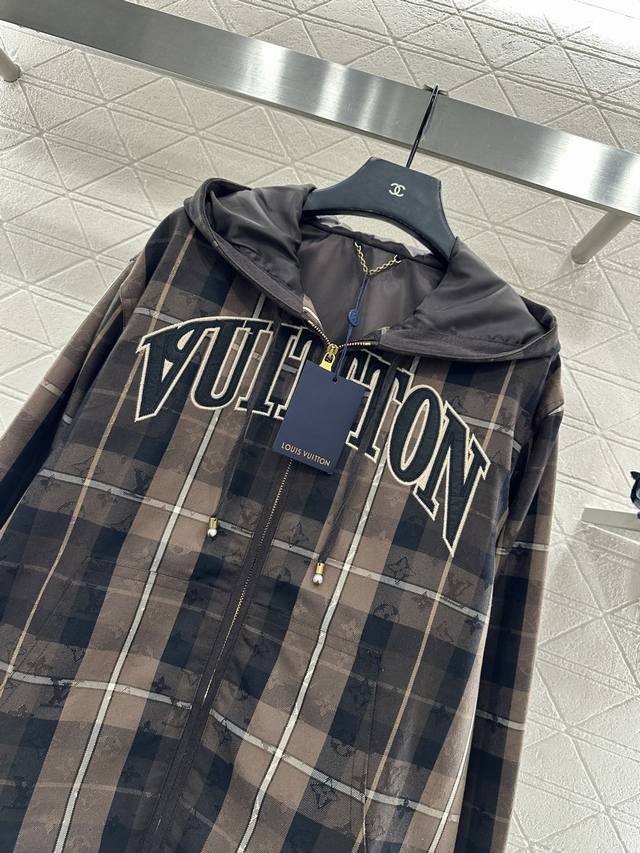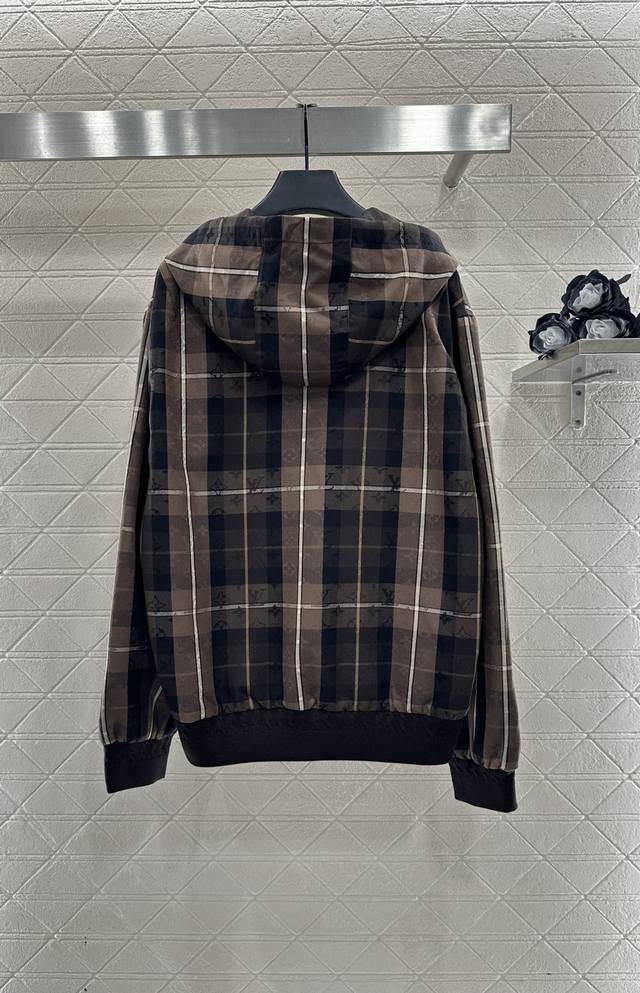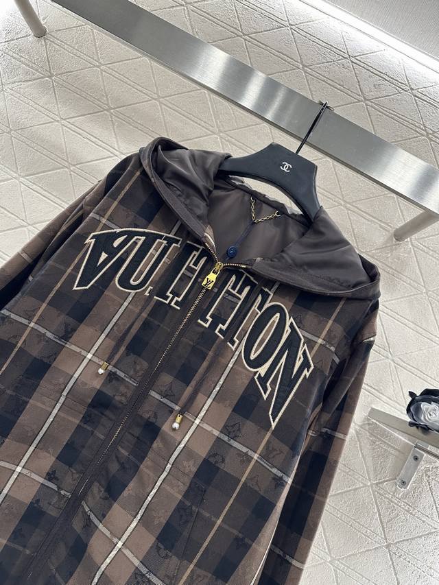 Louis Vuitto*2025 New Arrival DDD Brown Check Jacquard Hooded Zip-Up Jacket DDD Custom Yb Imported Fine Imitation Wool Material, High-Quality Texture, Stylish Design. The hooded zip-up jacket features an adjustable drawstring for easy wear. Delicate elastic trim on the cuffs and hem. The brown Maillard check jacquard pattern with four-leaf clover and logo design, along with the brand logo on the chest, subtly showcases individuality. Comfortable and stylish, it's suitable for everyday wear or casual outings. High-quality custom fabrics and accessories. DDD