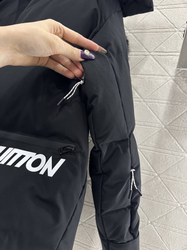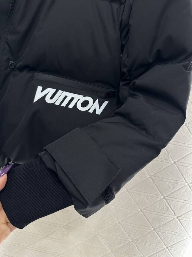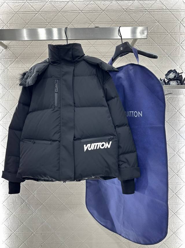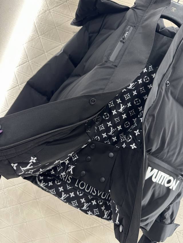 Louis Vuitto*2025 New Arrival DDD Detachable Hooded Down Jacket DDD 25 Ski Series# Custom Yb Imported windproof and waterproof nylon material, replicating the craftsmanship, upgraded material, enhanced autumn and winter warmth, down-filled lining, lightweight and warm throughout. Features a detachable hood with a stand-up collar for two-way wear, a predominantly solid color body, printed lettering on the pockets for a sophisticated and stylish look, an all-over four-leaf clover letter pattern on the lining for enhanced texture, a rectangular checkered embossed torso, zippered opening, snap button closure at the hem, and multiple zippered pockets on the sleeves for added convenience for skiing or everyday wear, fashionable and trendy. Comes with an exquisite dust bag. Customized fabric and accessories, high-quality black version. DDD