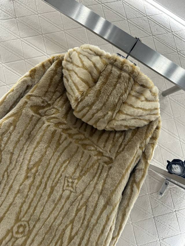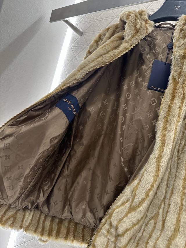 Louis Vuitto*2025 New Arrival DDD Hooded Fur Coat DDD Custom-made imported fur, with a comfortable sheen, lightweight and warm. This mid-length hooded coat features a vertical striped animal print pattern throughout, showcasing the brand's philosophy through full fur coverage. The fur has a bright, glossy sheen, and the logo on the chest is prominently displayed. The lining is subtly decorated with a four-leaf clover pattern, exuding luxurious charm. The relaxed fit is forgiving and lightweight. Custom-made fabrics and accessories, please ensure you choose the highest quality version. DDD